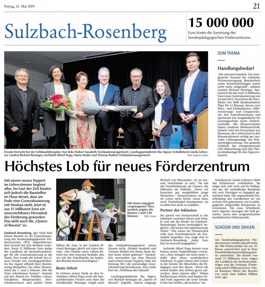 Am 28.05.19 fand unsere offizielle Schulhauseinweihung statt. Viele Gäste feierten mit uns, die Eröffnung. Hier der Artikel aus der Sulzbach-Rosenberger Zeitung