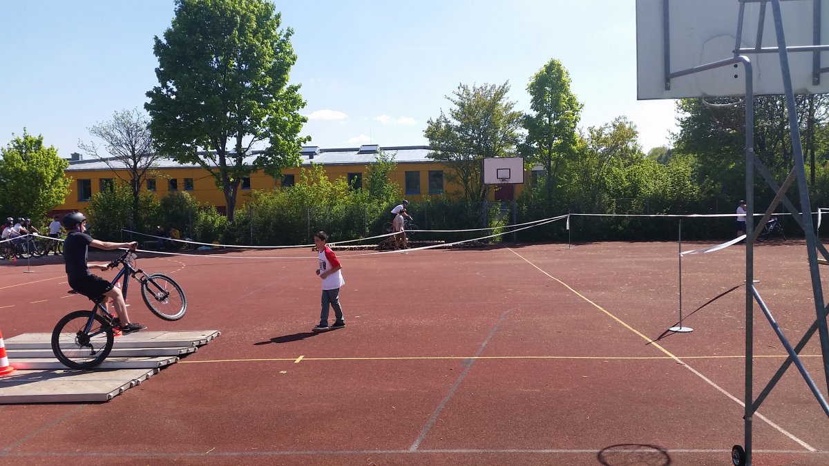 Circa 18 Schulen – von Gymnasium bis Mittelschule, von Bamberg bis Kehlheim – mit insgesamt 160 Schülern nahmen am Mittwoch ab 8.00 Uhr am Wettkampf teil. Bereits in aller Früh richteten die fleißigen Helfer der 6. und 9. Klasse den Geschicklichkeitspracours für die Teilnehmer her. Dieser sollte von allen Altersklassen fehlerfrei durchfahren werden.