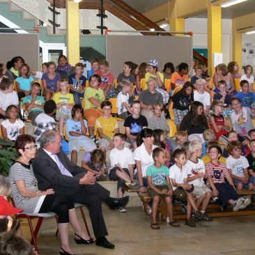 Alle Lehrer und Schüler versammelten sich in der Aula und verabschiedeten Ingrid Fischer, die 43 Jahre lang Fachlehrerin für Hauswirtschaft, Werken und Textilarbeit am Förderzentrum Sulzach-Rosenberg war.