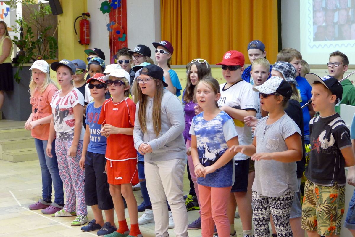 In der voll besetzten Aula, verabschiedeten große und kleine Schüler ihren Schulleiter mit einer Darbietung. Aber auch die Lehrer ließen es sich nicht nehmen, ihren Chef mit klassischer Musik und einem Chor zu verabschieden. Hier einige Eindrücke…