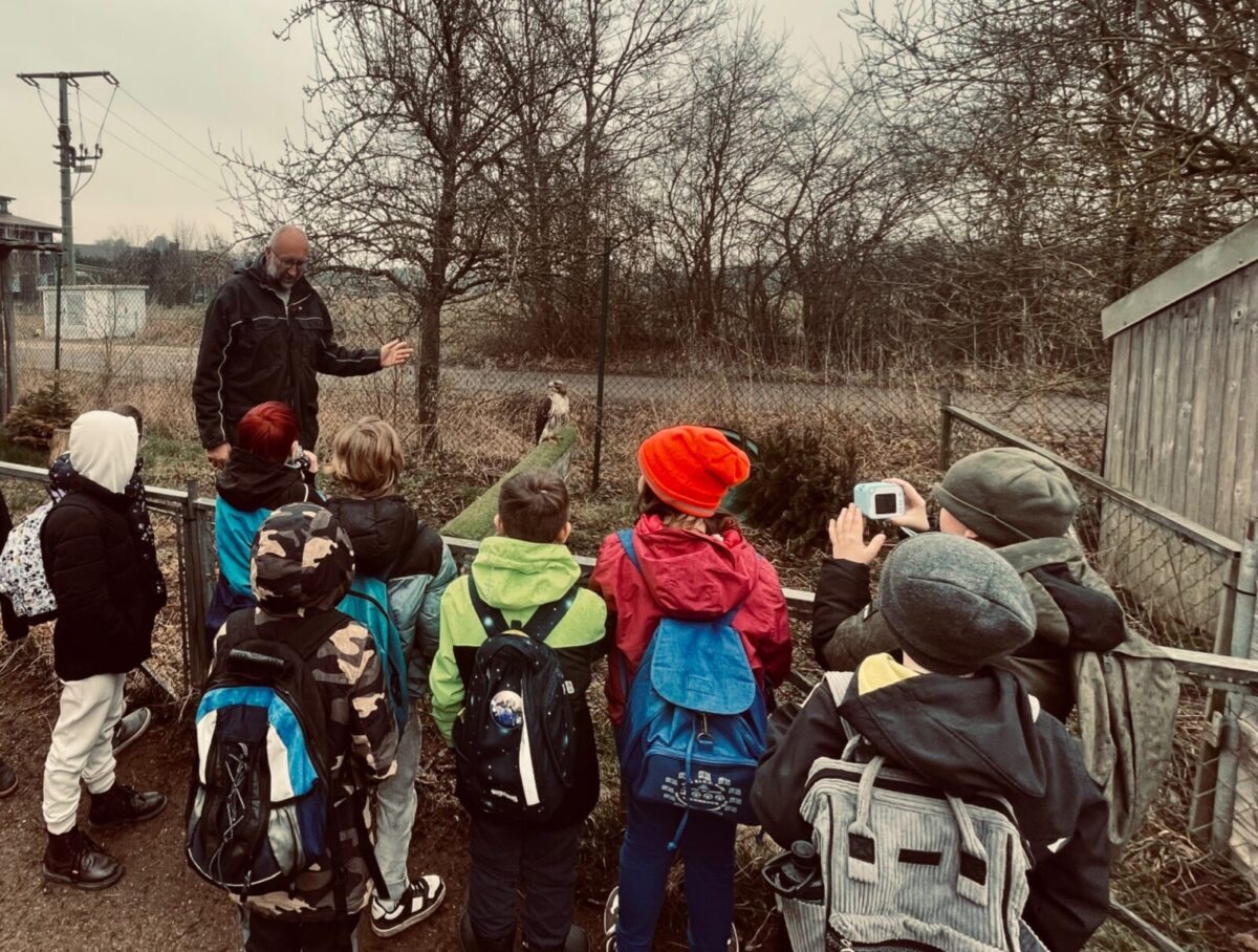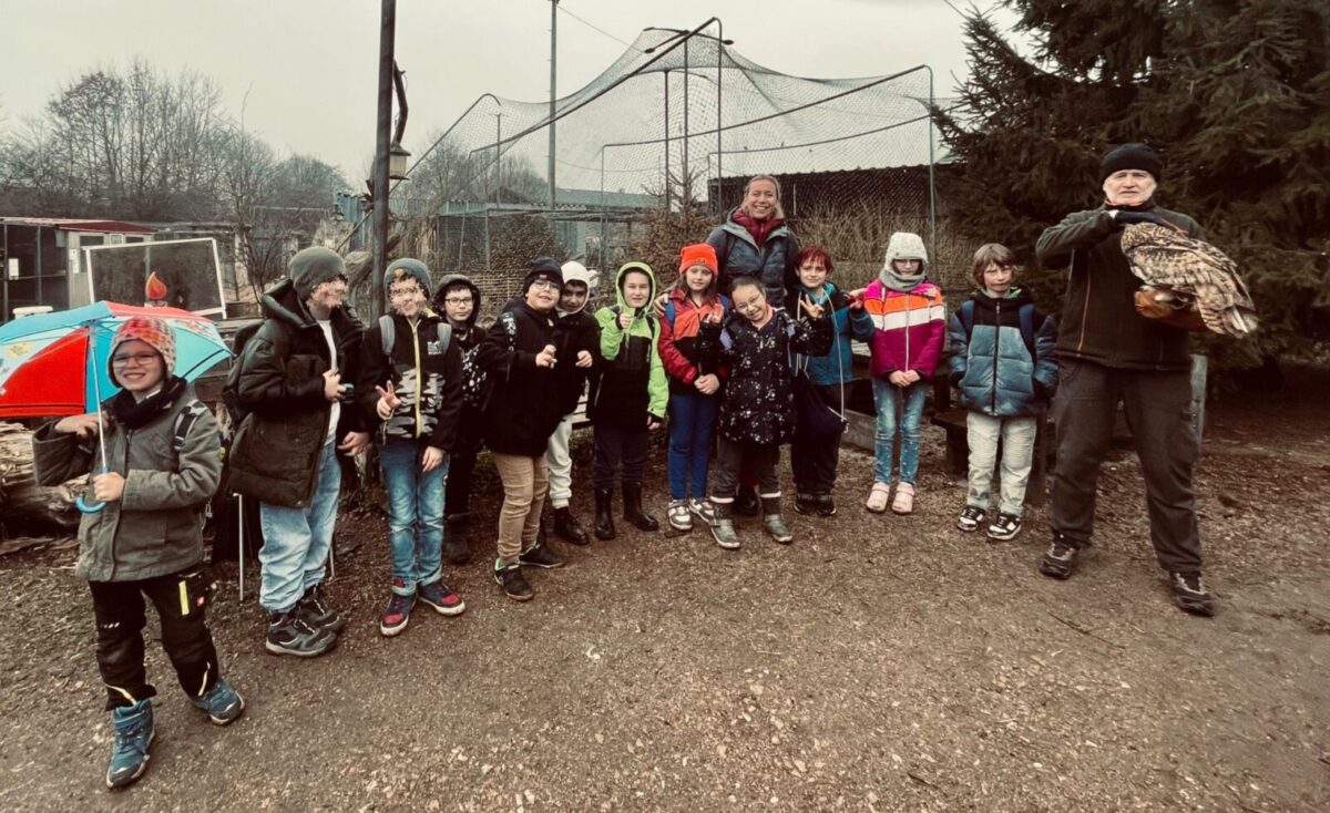 Die Klasse 2 besuchte die Tierauffangstation in Kümmersbuch. Dort werden vor allem verletzte Tiere zur späteren Auswilderung gepflegt. Durch die geführte Tour erfuhren die Schülerinnen und Schüler spannendes über die Tiere. Ein Highlight war Claus, ein sibirischer Kauz, dessen