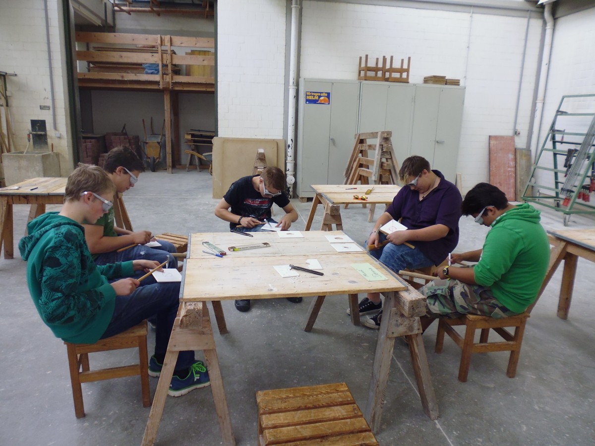 Im Berufsschulpraktikum lernten die Schüler im Rahmen des BLO – Unterrichtes bei Herrn Zintl, wie man Fliesen schneidet und Gasbetonsteine bearbeitet. Auch erhielten die Achtklässler einen Einblick in unterschiedliche Baustoffe, sowie Materialkunde und den Umgang mit verschiedenen Werkzeugen.