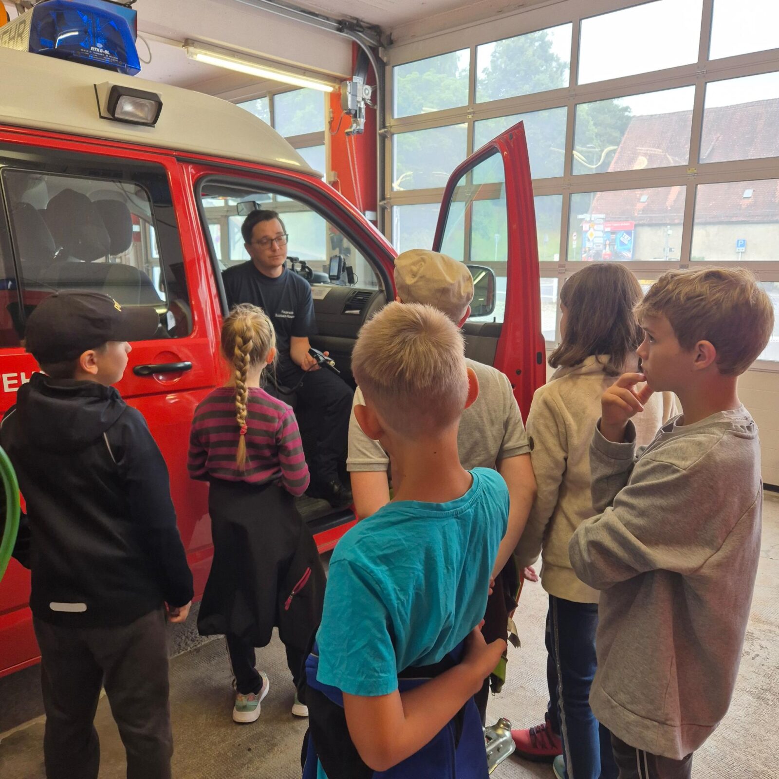 26 Juli 2025Besuch bei der FeuerwehrDie Klasse 3 hat mit ihrer Lehrerin Frau Huber die Feuerwehr in Sulzbach-Rosenberg besucht und alles genau unter Lupe genommen. Highlight war natürlich das Sitzen im Einsatzwagen!