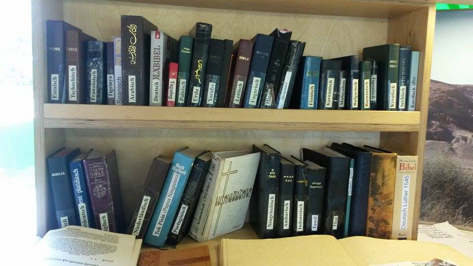 Im Erdgeschoss konnten die SchülerInnen in Bibeln aus verschiedenen Ländern blättern. Besonders sehenswert war die Bibel in Blindenschrift, eine wasserfeste Badewannenbibel, sowie die kleinste Bibel der Welt, die nur durch ein Mikroskop gelesen werden kann.