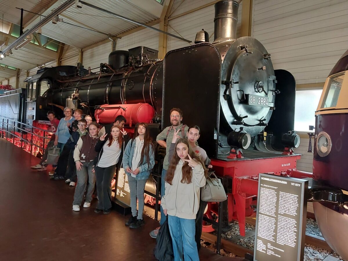 Nach der Führung hatten die Schülerinnen und Schüler die Gelegenheit, zahlreiche beeindruckende Ausstellungsstücke zu besichtigen. Besonders hervorzuheben war die schnellste Dampflokomotive Deutschlands, die mit einer Geschwindigkeit von 200 km/h beeindruckte. Auch der prunkvolle Reisewaggon von König Ludwig II. zog viele Blicke auf sich, ebenso wie die erste Lok, die jemals in Deutschland fuhr, der „Adler“.