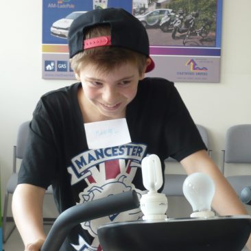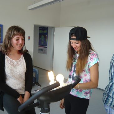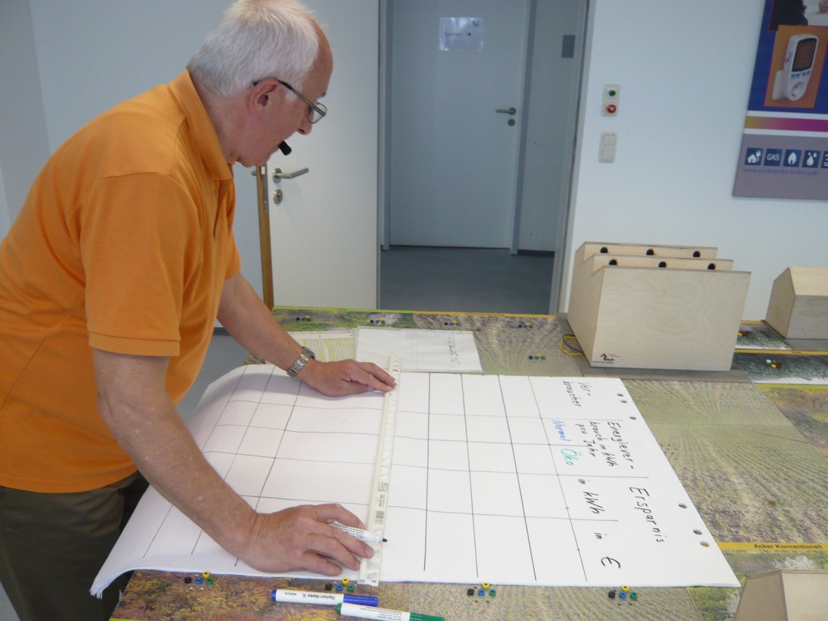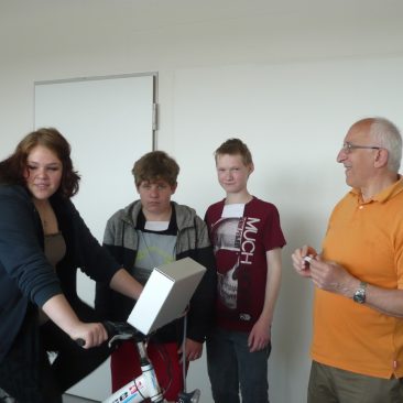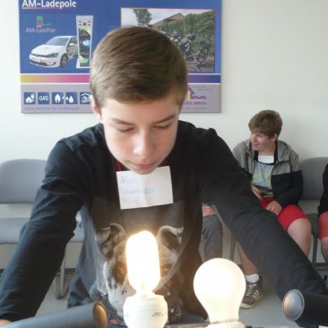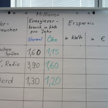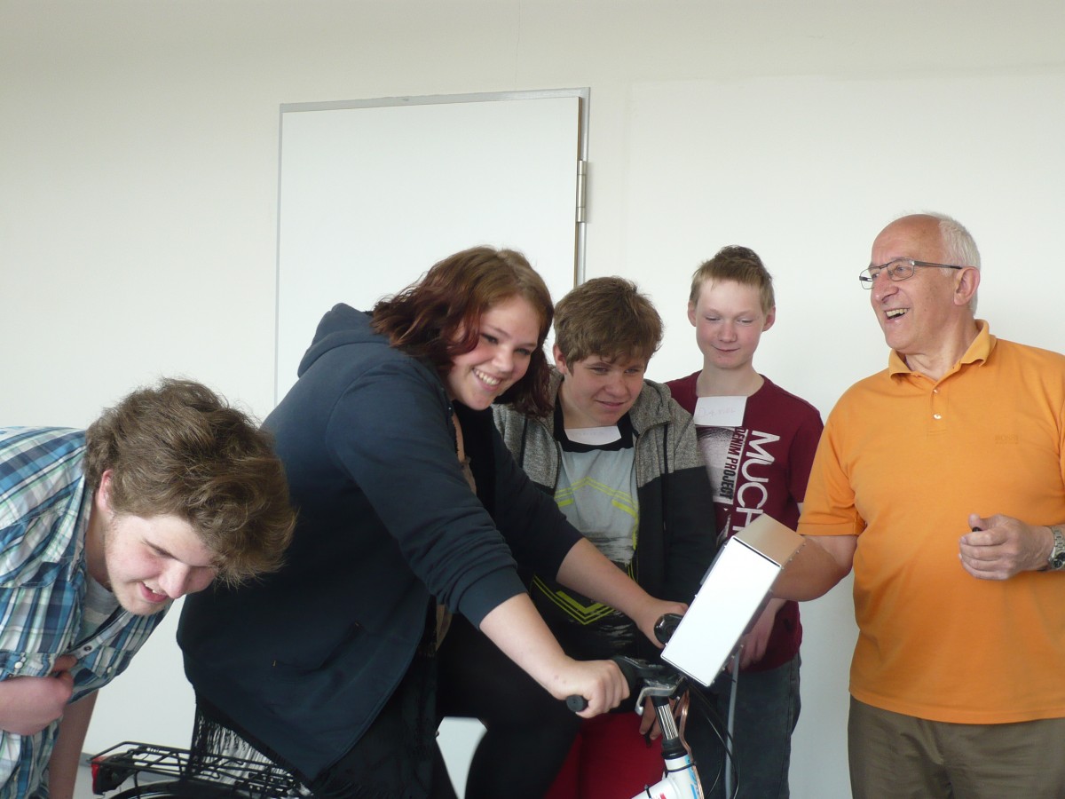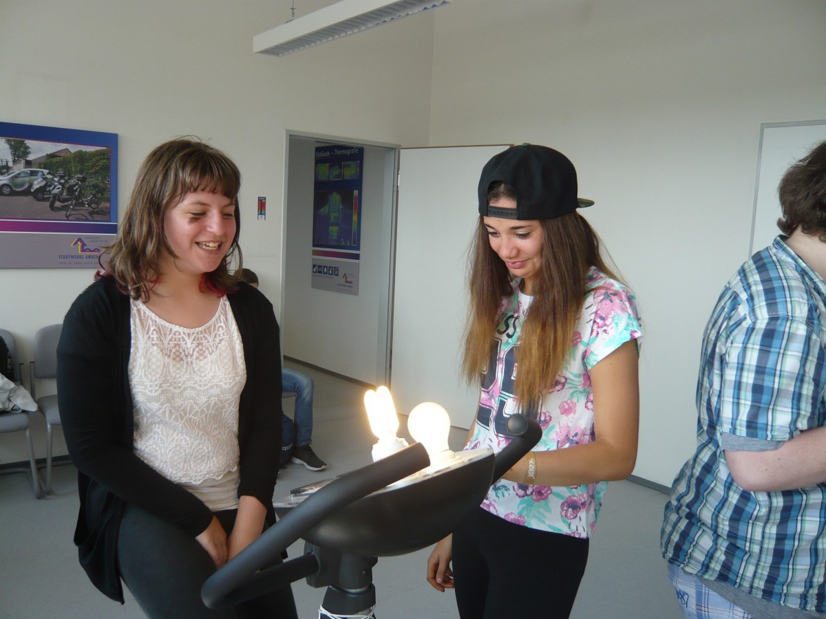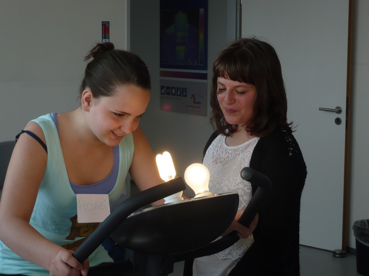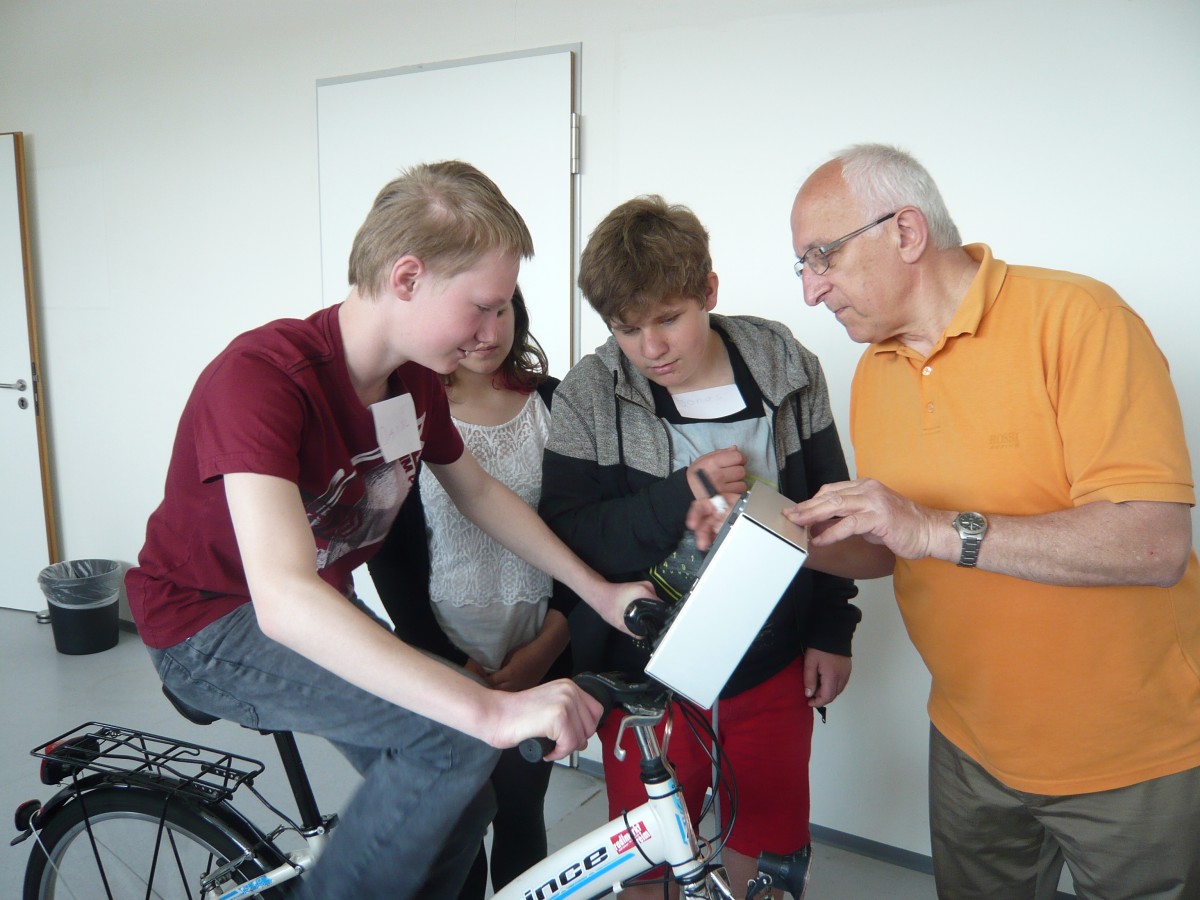 Die Auswirkungen unterschiedlicher Stromerzeuger und Stromverbraucher wurde den Schülern auf einer Leinwand sichtbar gemacht. Am Energiefahrrad konnten die Teilnehmer durch ihre Muskelkraft verschiedenen Energieverbraucher (Radio, Wasserkocher, Glühlampen, LED-Lampen) mit Strom versorgen. So war der Energieaufwand bei LED-Lampen viel geringer als bei Glühlampen. Durch vereinte Kräfte schaffte man es sogar, eine Tasse Wasser von 20 Grad Celsius auf 50 Grad zu erhitzen. Die momentan erbrachte Leistung entsprach der Leistung des Verbrauchers und wird mit der Einheit Watt (W) angegeben. Es wurde eine elektrische Leistung von bis zu 200 W erreicht. Bei den erneuerbaren Energien kamen Biogasanlagen, Windenergieanlagen und Photovoltaikanlagen zum Einsatz. Die Sonnenenergie wurde durch elektrische Strahler simuliert. Den Schülern wurde bewusst, dass das Handeln eines Einzelnen nur geringe Auswirkung hat, während ein gemeinsames Handeln aller Beteiligten sich positiv auf die Ökobilanz eines Dorfes auswirkt. Mit einem Messgerät konnte der Energieverbrauch von elektrischen Geräten im Standby gemessen werden. 100 Millionen Geräte im Standby erfordern den Strom eines ganzen Atomkraftwerkes. Auch das Thema Energiesparen wurde angesprochen. Interessierte Schulklassen können sich mit Peter Zahn vom Bund Naturschutz in Verbindung setzen Tel. 09661/9740.