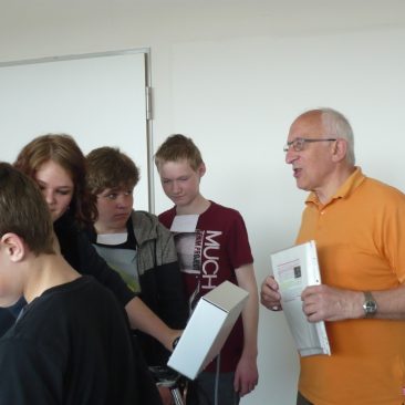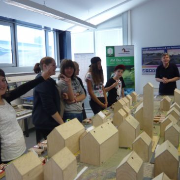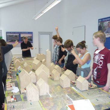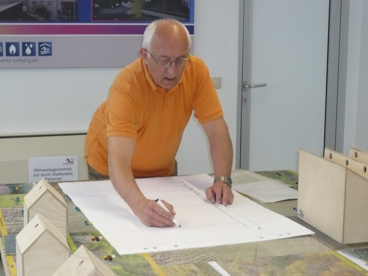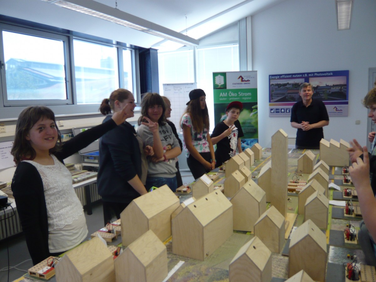 Zwei Klassen des Sonderpädagogischen Förderzentrums mit den Lehrern R. Oeckl und H. Kasper besuchten das Energiespardorf bei den Stadtwerken Amberg. Kursleiter war der ehemalige Berufsschullehrer Josef Weinfurtner.