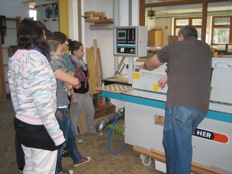 Die 8. Klasse beim Praktikum zum Berufsfeld Holz in der Berufsschule