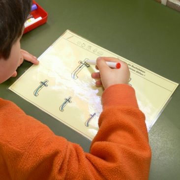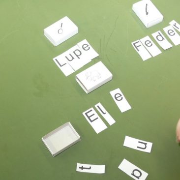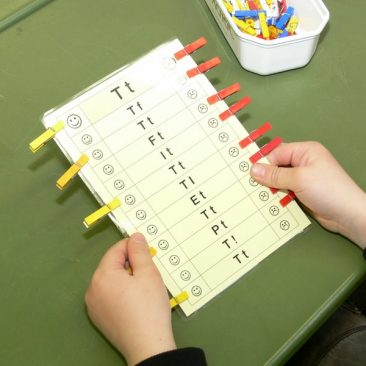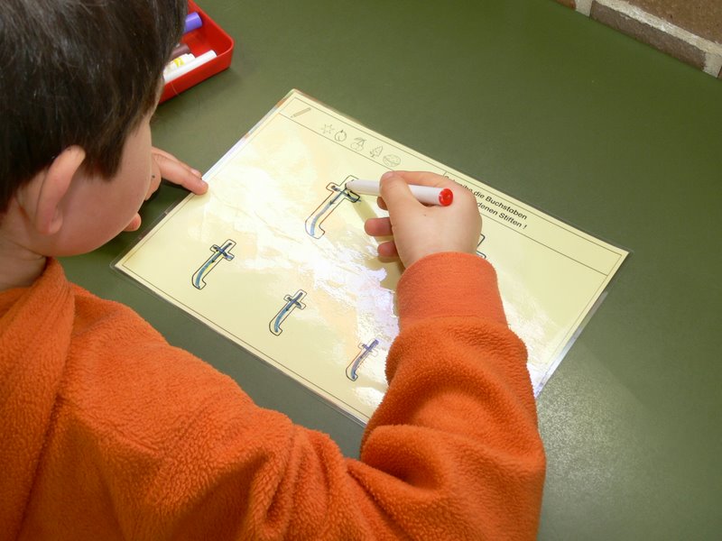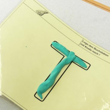 Das Lernen an Stationen ist eine Form der Freiarbeit, bei der ein Thema, in diesem Beispiel der Buchstabe T t über vielfache Zugänge erarbeitet und vertieft wird.