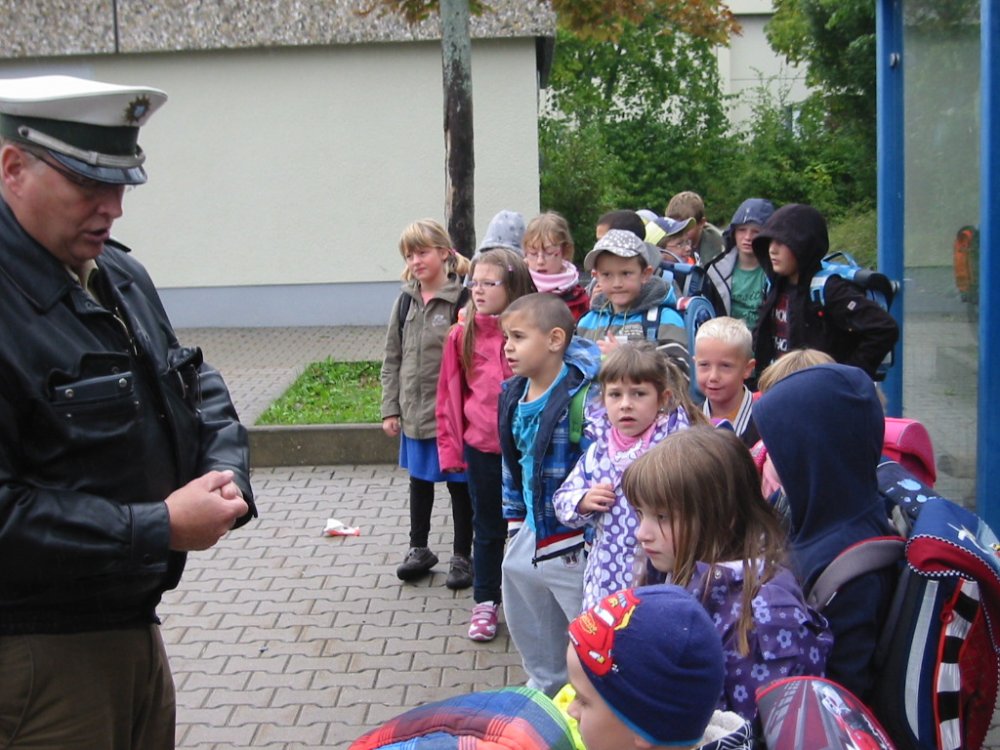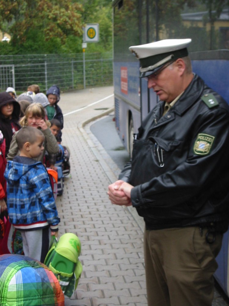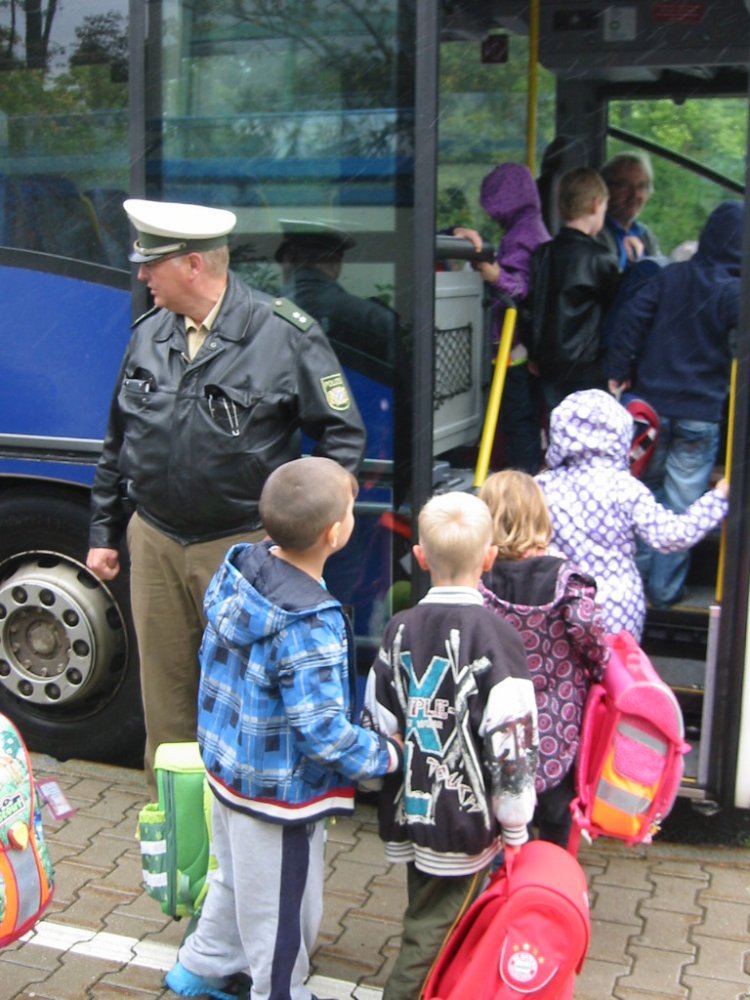 Dabei hörten die Kinder den Ausführungen des Verkehrserziehers nicht nur interessiert zu, das richtige Verhalten im Bus konnte in der Praxis gleich ausprobiert werden. Das Busunternehmen Bruckner hatte einen Schulbus zur Verfügung gestellt. Der Busfahrer drehte mit den Kindern, den Lehrkräften und dem Polizisten eine kleine Runde im Krötenseegebiet.