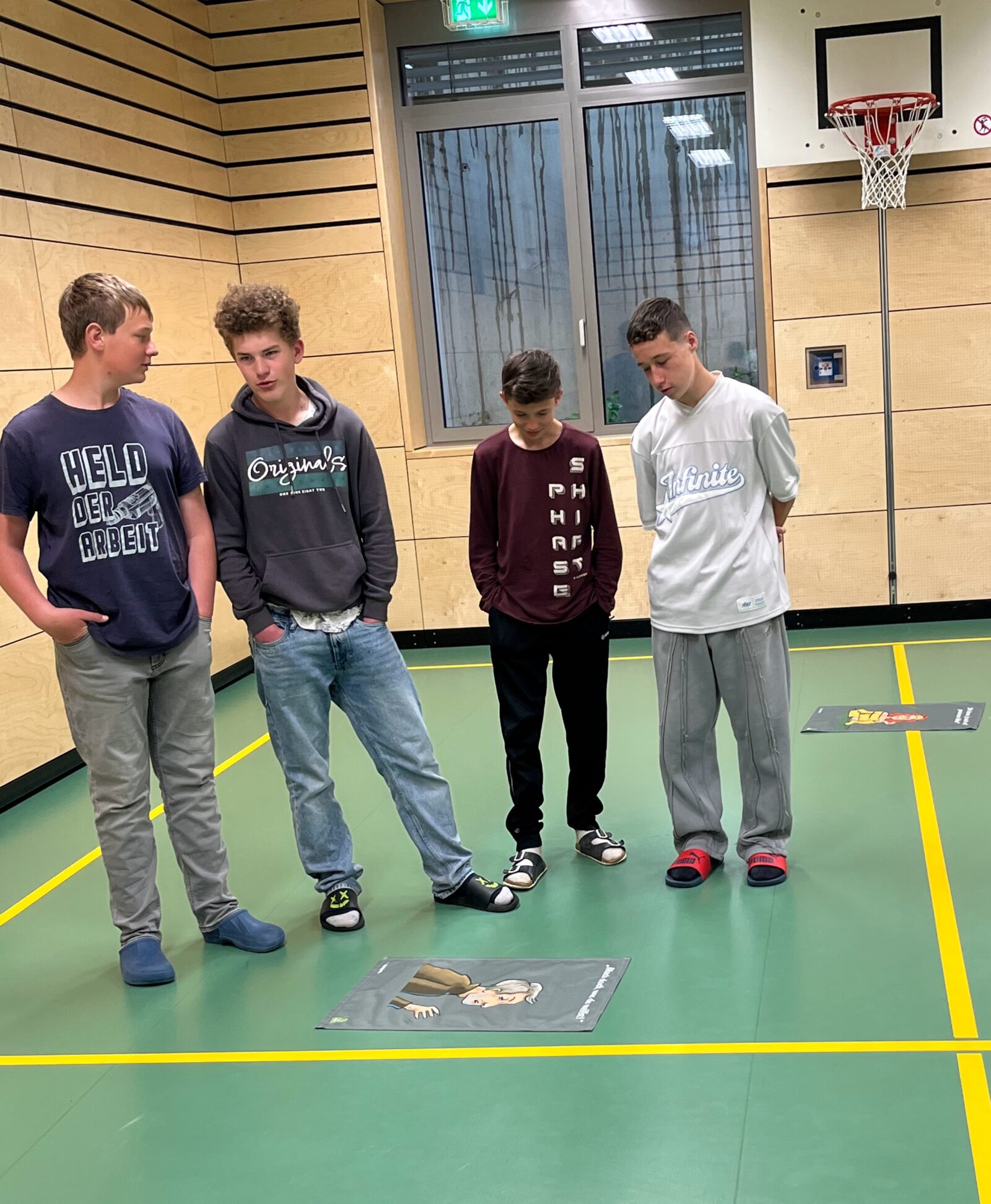 Teils fand Unterricht in der Turnhalle statt, teils in Gruppen im Klassenzimmer, verbunden mit unterschiedlichen Materialien und initiiert durch verschiedene Gesprächsanlässe.