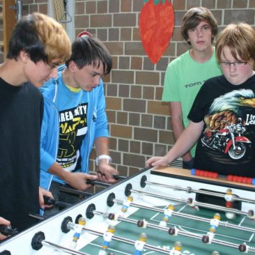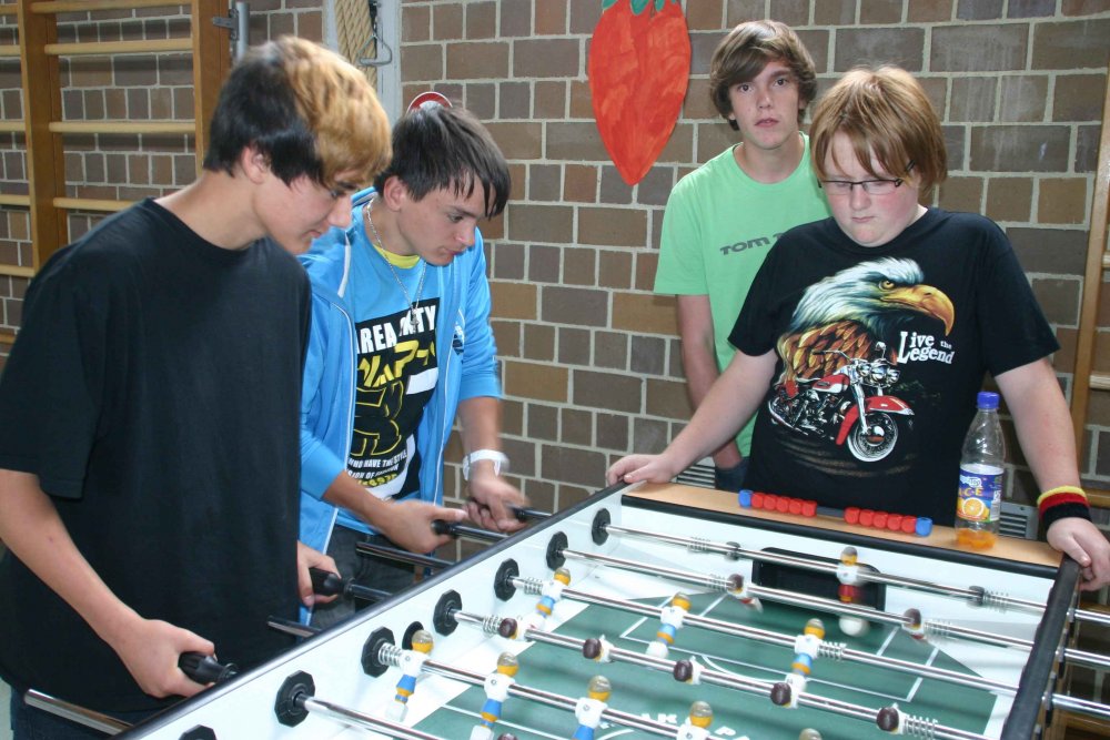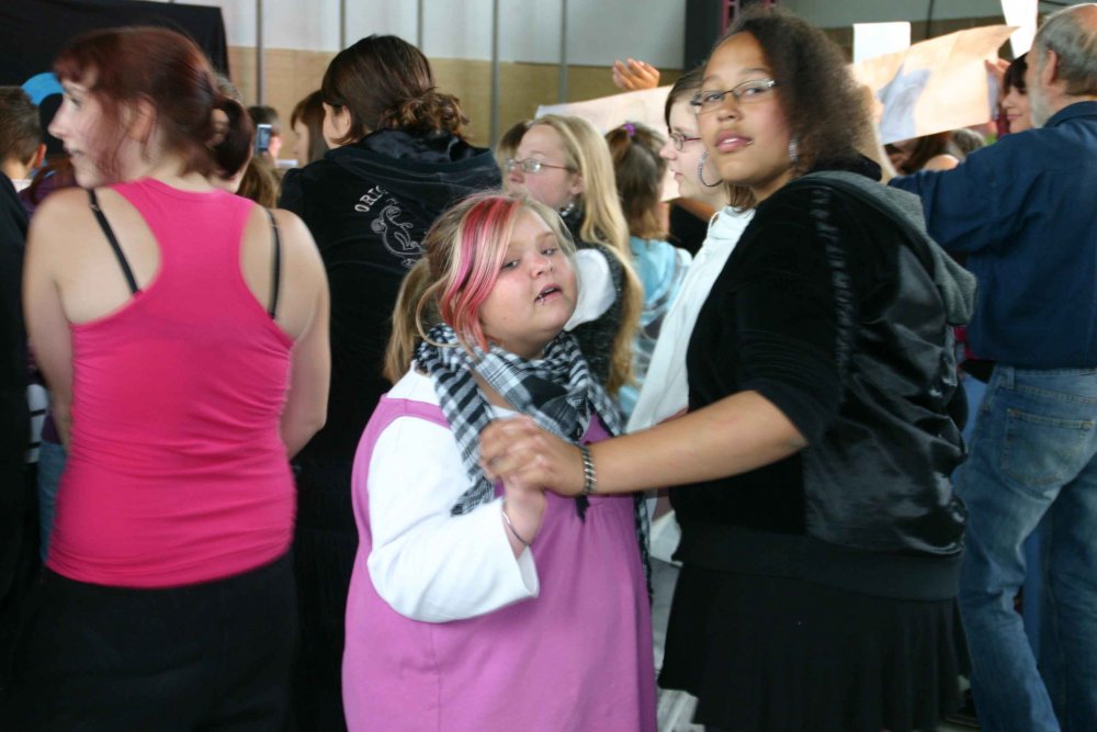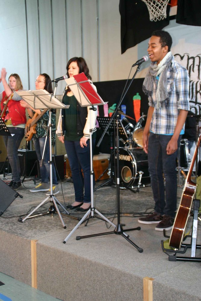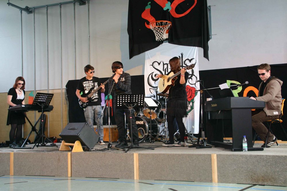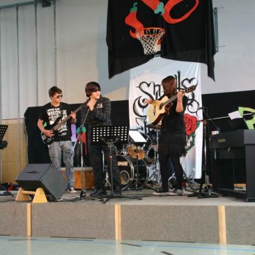 Am Freitag fand am Sonderpädagogischen Förderzentrum ein besonderer Schultag statt. Die Klassen der Jahrgangsstufen 5 bis 9 versammelten sich alle in der vollkommen umgebauten Schulturnhalle. Dort, wo sonst Fußball gespielt oder Turnübungen vollzogen werden, hatten Schüler und Lehrkräfte ein komplettes Rockfestival-Gelände aufgebaut: Neben Bandbühne und Tanzbühne waren Essens- und Getränkestände, eine Chill-out-Area zum Entspannen und ein Kickerkasten für Unterhaltung zwischendurch hergerichtet.