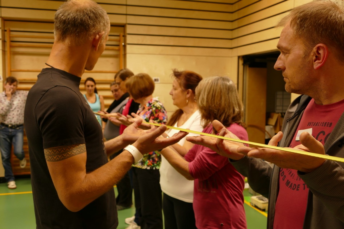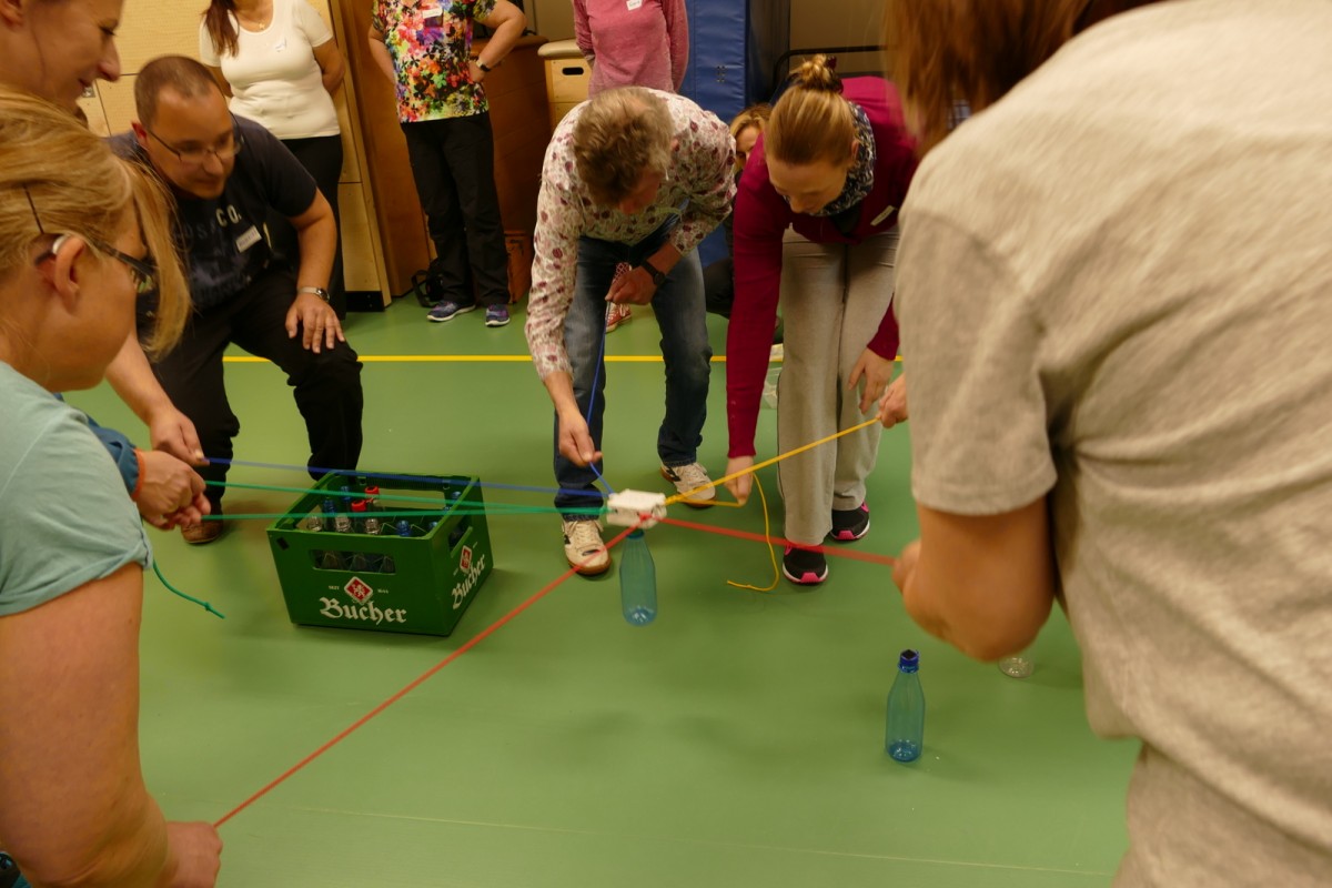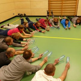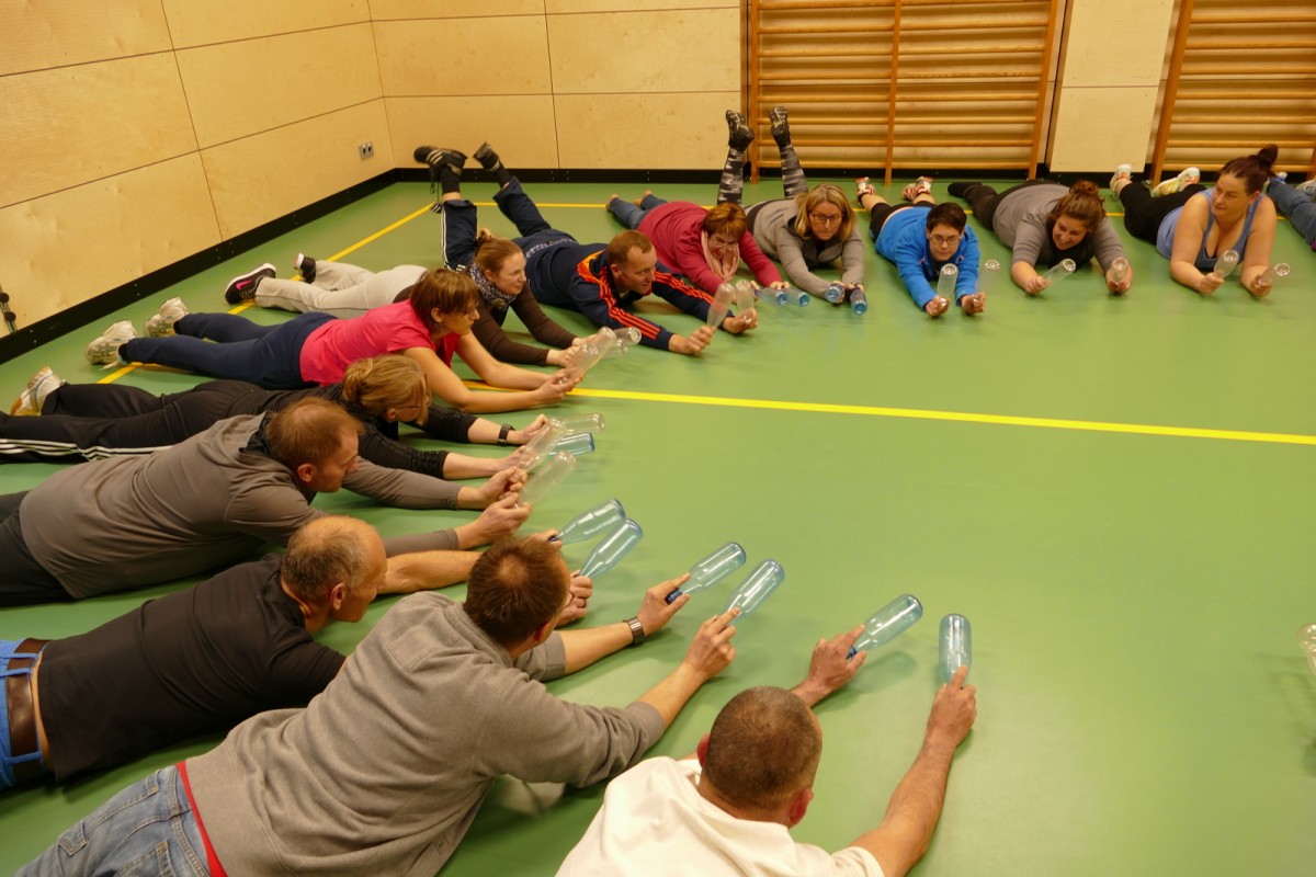 Am Wochenende hatten wir am Förderzentrum eine Lehrerfortbildung. Herbert Schatz aus der Brunnenschule Augsburg stellte „Locker bleiben“ sein Sozialtraining für Schüler mit sonderpädagogischem Förderbedarf vor. Alle Teilnehmer erlebten sechs kurzweilige Stunden mit handlungsorientierten Anregungen zum Sozialen Lernen und zur Gewaltprävention. Ein einstündiger Theorieteil ergänzte den lebhaften Praxisteil. Im Mittelpunkt des Tages standen neue, kreative und ungewöhnliche Ideen. Dass nicht nur Wissen vermittelt wurde, sondern alle Beteiligten auch viel Spaß hatten, kann man in den Bildern und Videosequenzen erkennen.