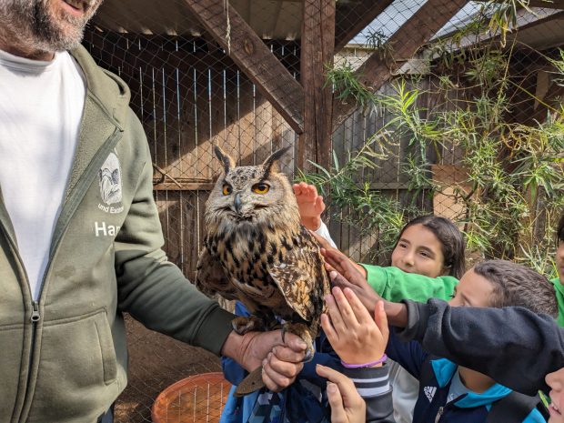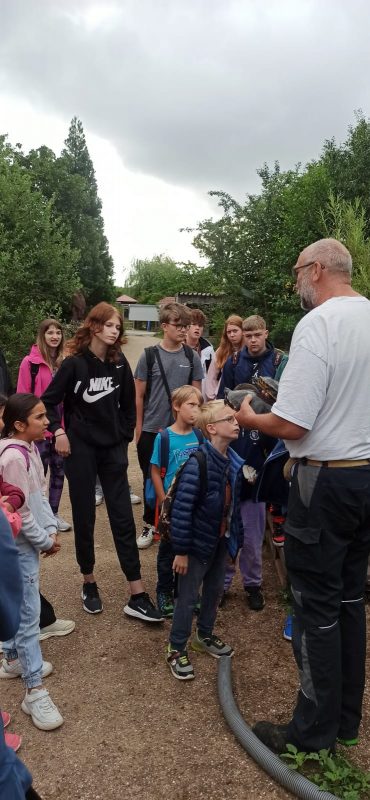 Als Abschluss der gemeinsamen Unterrichtsstunden und das Schuljahres war heute ein Besuch der Tierauffangstation in Kümmersbuch geplant. Auf den Fotos ist die Begeisterung und das Interesse der Schüler gut zu sehen. Außerdem war es schön zu beobachten, dass die Großen und Kleinen inzwischen viel selbstverständlicher miteinander umgehen. Nach so vielen gemeinsamen Aktionen kennt man sich … 😉