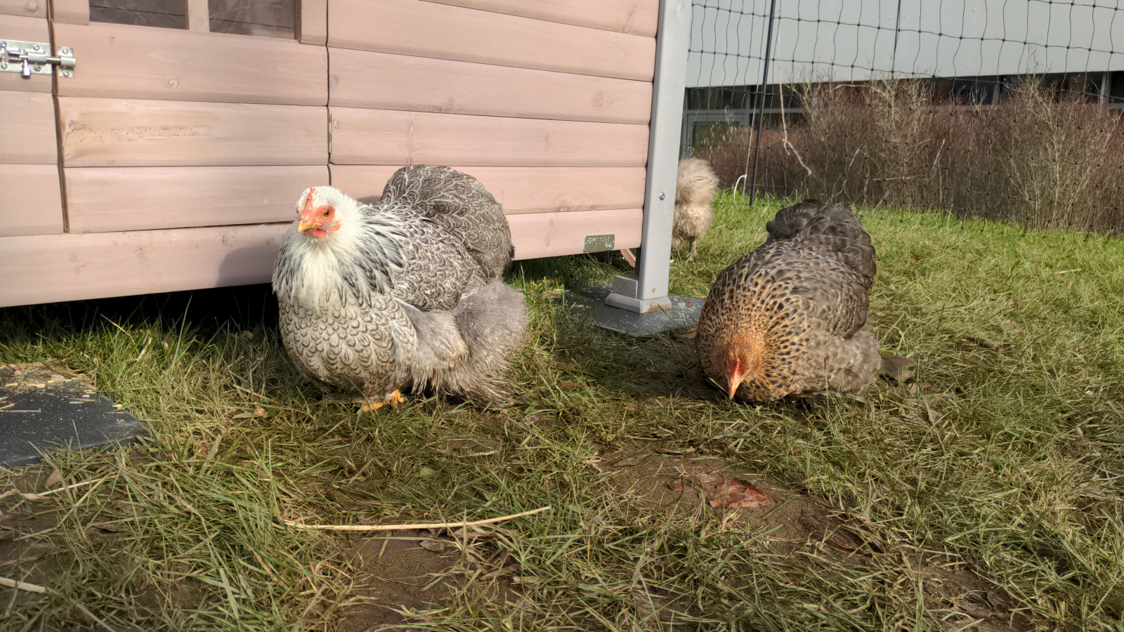 Jetzt wird fleißig regelmäßig der Stall ausgemistet, Futter und Tränke überprüft, das Gefieder nach Ungeziefer durchsucht, etc.
