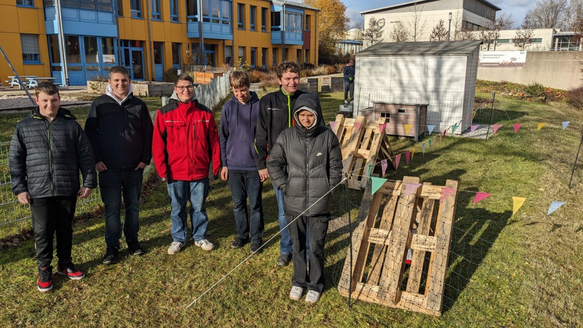 Damit war schon zu diesem Zeitpunkt alles klar – es wird tierischen Nachwuchs geben. Die AG unter der Leitung von Herrn Radl machte es sich zunächst zur Aufgabe, einen mobilen Hühnerstall zu beschaffen und auszustatten sowie ein Areal, den so genannten Hühnergarten, abzustecken.