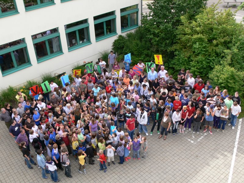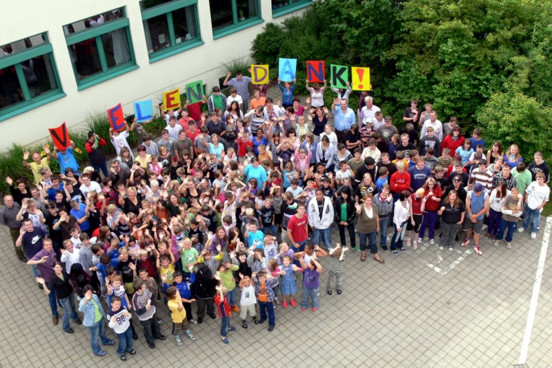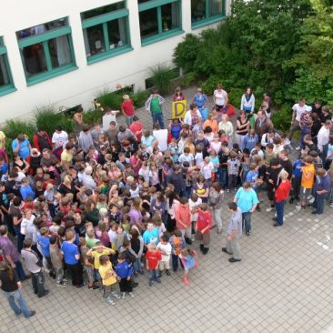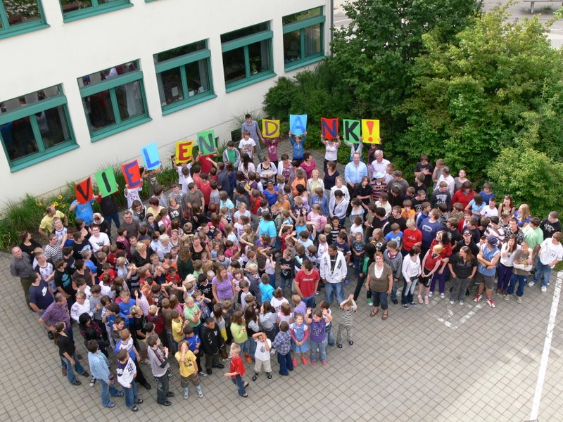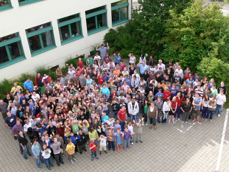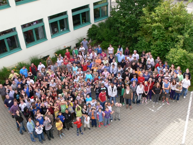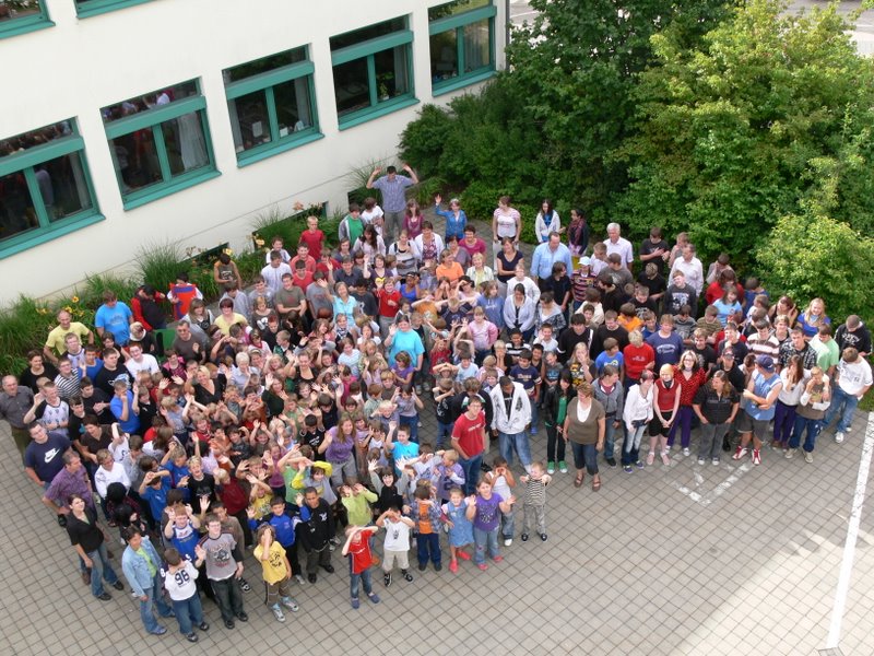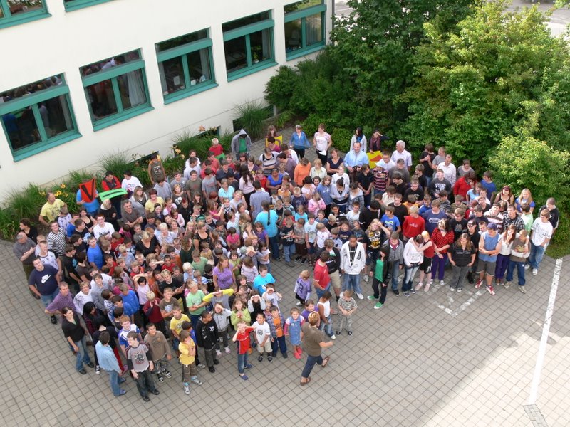 Damals haben wir alle Schüler und Kollegen von oben fotografiert um dem scheidenden Konrektor Christian Schwab ein Abschiedsfoto überreichen zu können…