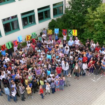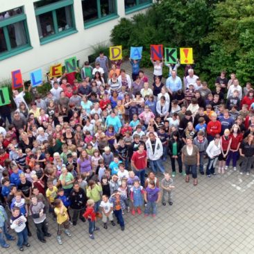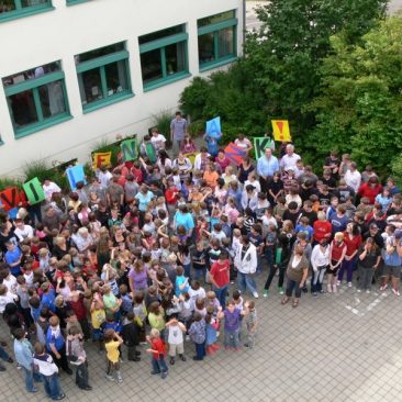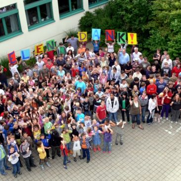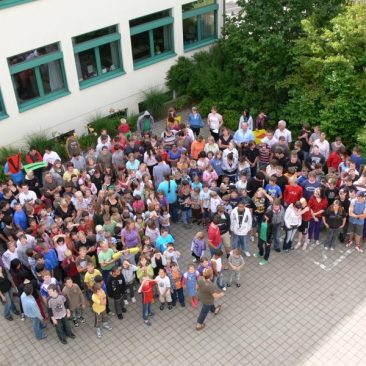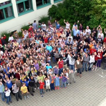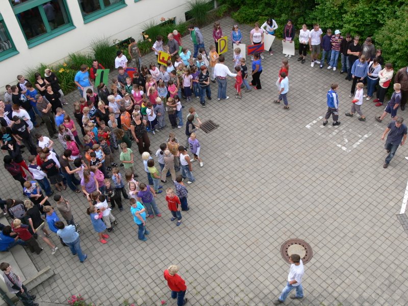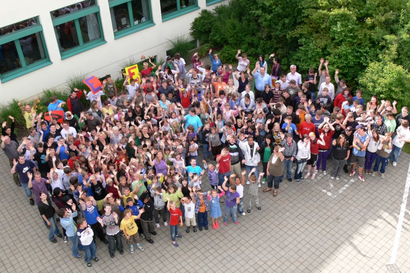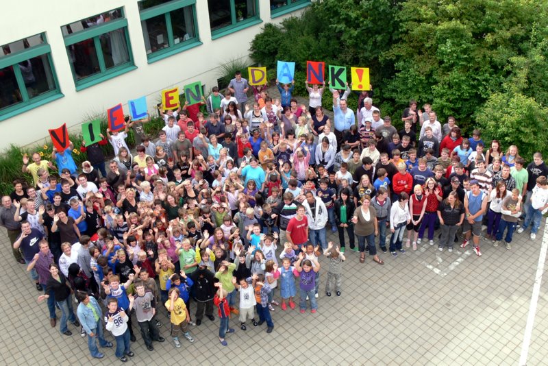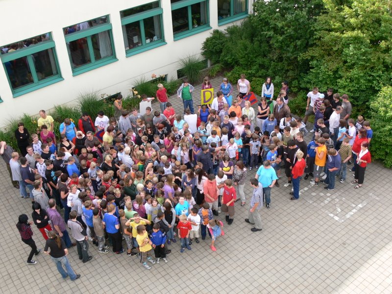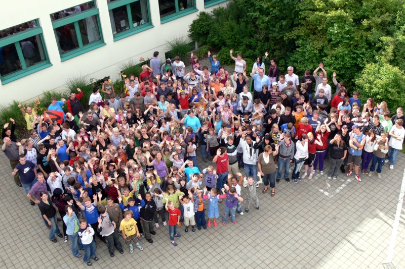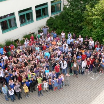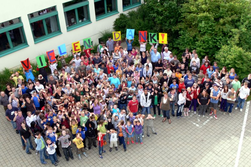 Damals haben wir alle Schüler und Kollegen von oben fotografiert um dem scheidenden Konrektor Christian Schwab ein Abschiedsfoto überreichen zu können…