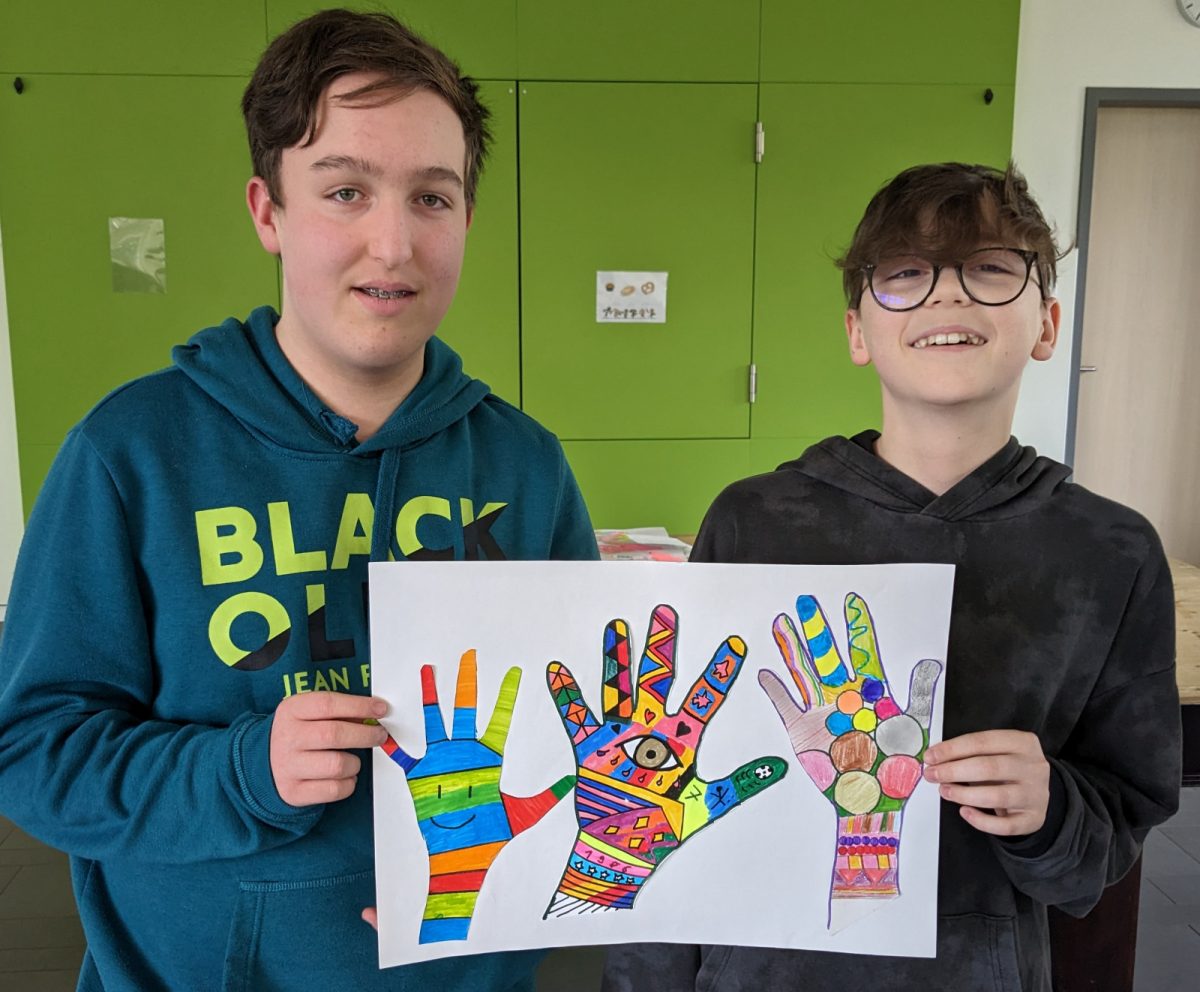 Die Schülerinnen und Schüler des SFZ malten dabei gemeinsame Fußballspiele, Freundschaften oder schöne Herzen.