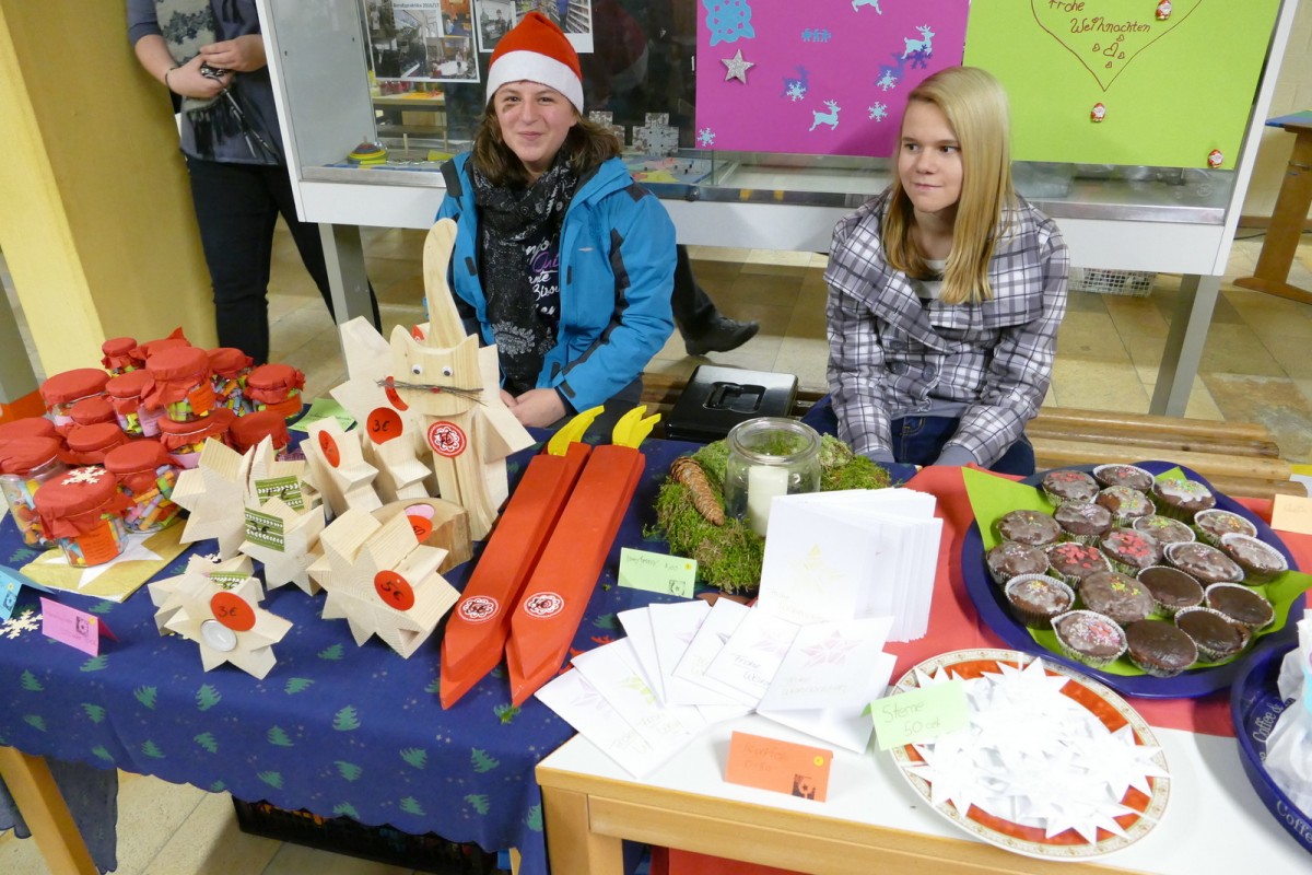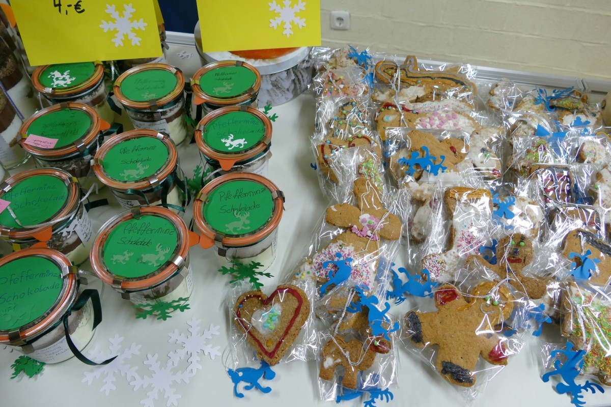 Beim anschließenden Bummel zwischen den geschmackvoll dekorierten Verkaufsständen blieb Zeit für Gespräche und Begegnungen in weihnachtlicher Atmosphäre. Der Elternbeirat und die Schüler der Oberstufe sorgten dabei mit Leckereien wie Flammkuchen, Bratwurst, Waffeln, Kuchen und köstlichen Cocktails für das leibliche Wohl. Frau Krusche organisierte eine Tombola, bei der es tolle Preise zu gewinnen gab. Dabei gewann sogar jedes Los!