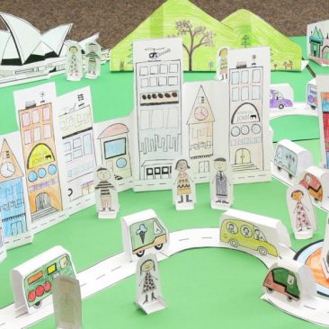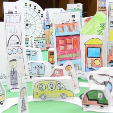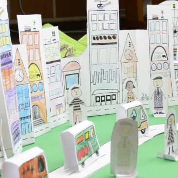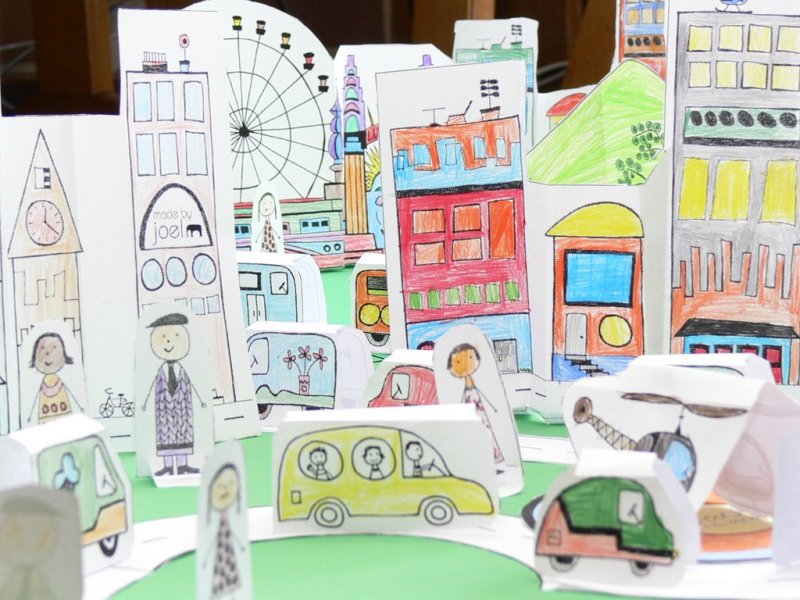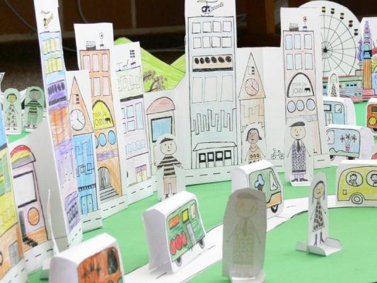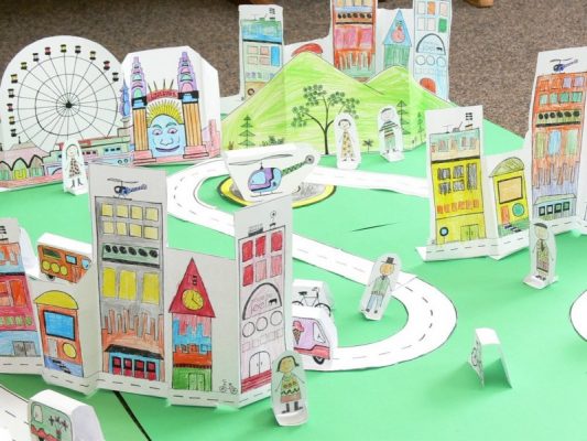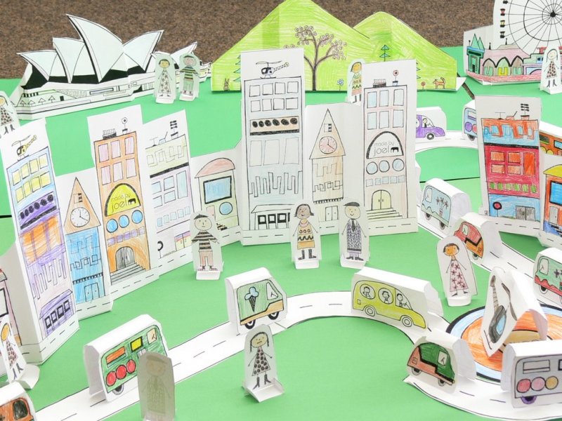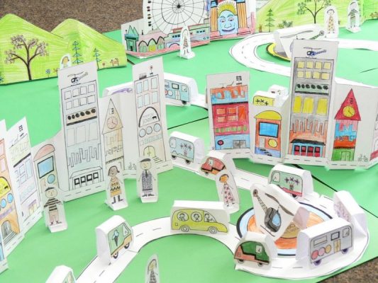 Als ich die Bilder des Künstlers Joel Henriques im Internet gefunden habe, wusste ich sofort, dass meine Schüler von der Idee, eine Stadt aus Papier zu bauen, begeistert sein werden.
