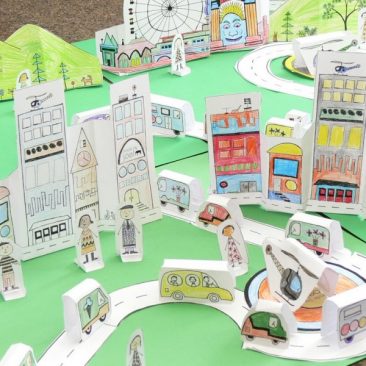 Ich habe den Kindern, die auf den Bus warten und in der Spielstunde noch in der Klasse sind, erlaubt mit der Papier-Stadt zu spielen, was mit einem großen Hurra aufgenommen wurde.