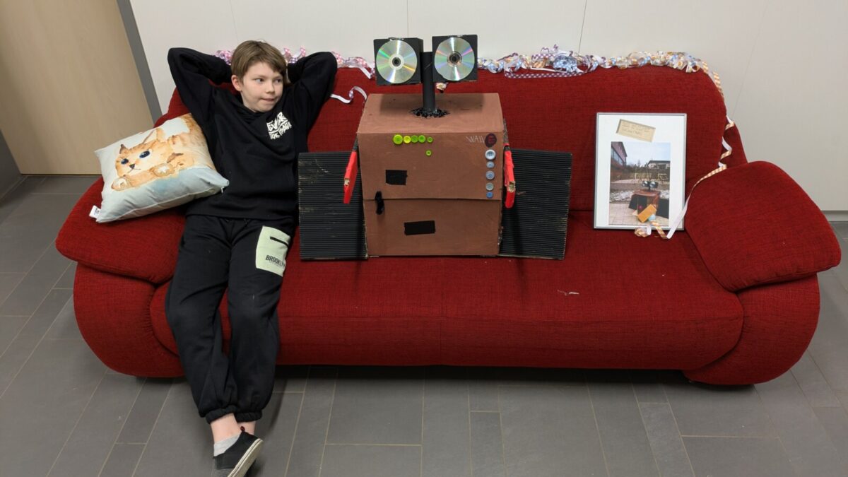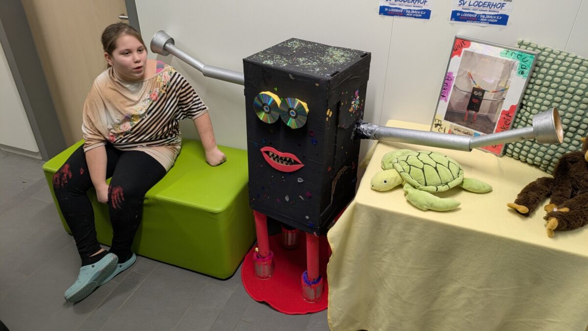 Dann sind wir mit unseren zugewiesenen Erwachsenen in die Vorbereitungsphase gegangen. Es wurden uns bestimmte Materialien zum Basteln gestellt, sodass sich jeder erstmal ein Überblick verschaffte. Jeder nahm sich das zur Verfügung gestellte Material und schaute, was er/sie benötigte. Es gab zum Beispiel Scheren, Kleber, Kartonage, Acrylfarben, Kleister und noch viel mehr. Jeder hat seiner Fantasie freien Lauf gelassen.