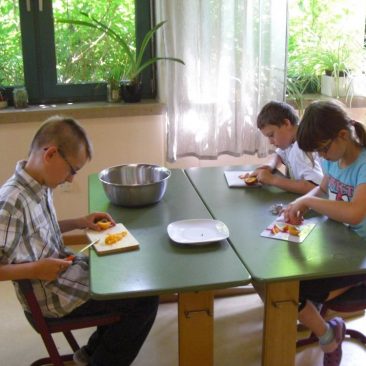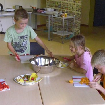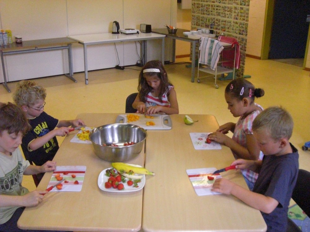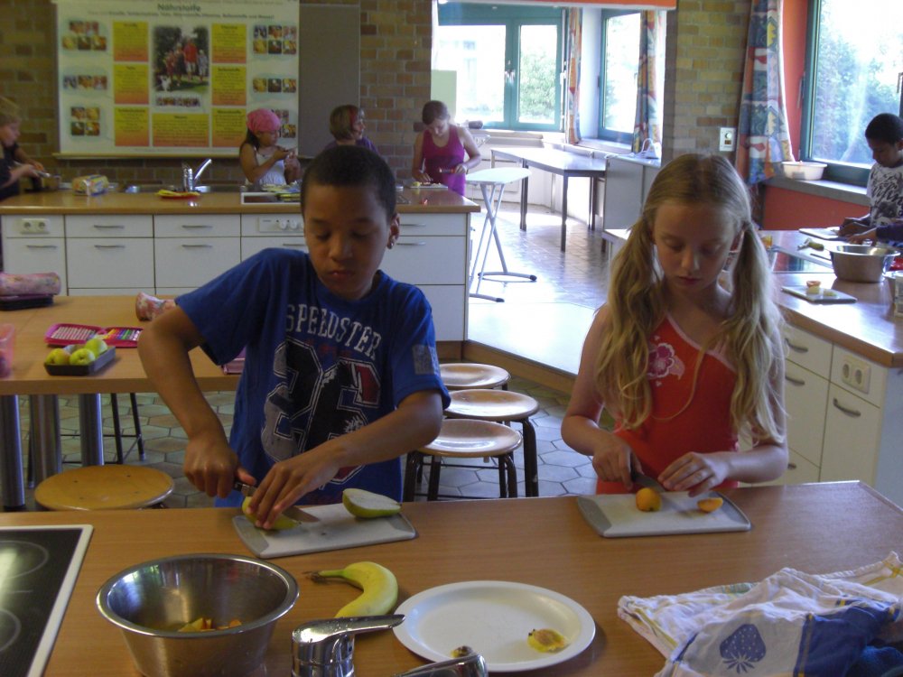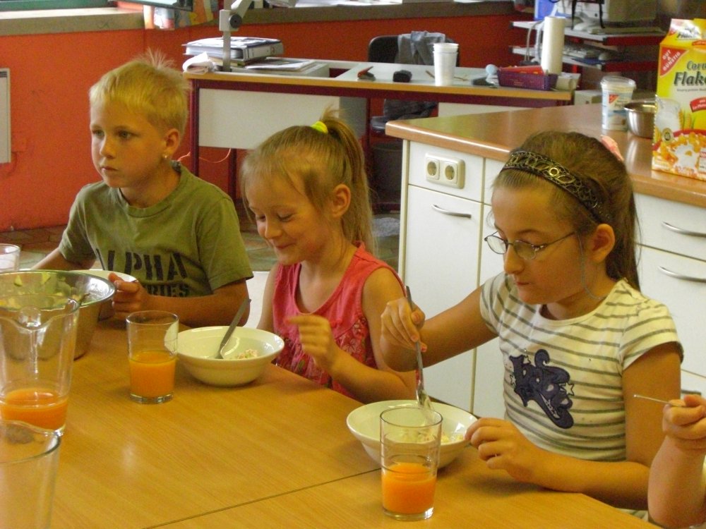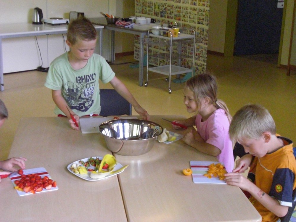 Die Bilder zeigen die Freude und Begeisterung der Kinder beim Zubereiten eines gesunden Frühstücks.