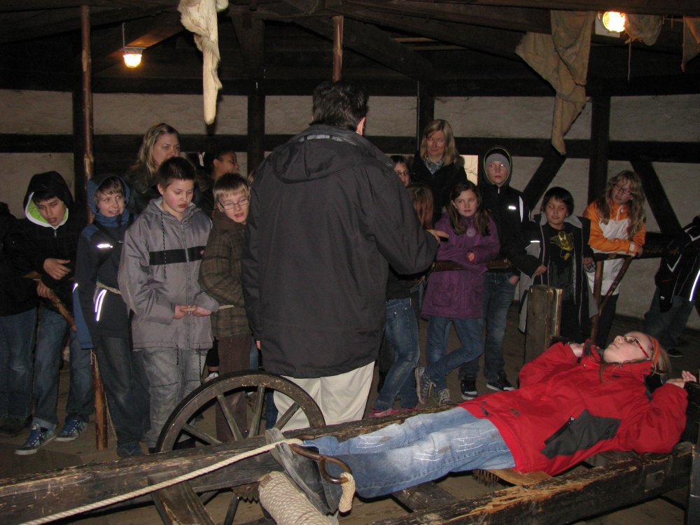 Nach dem Spaziergang haben wir eine Burgführung gemacht. Der „Burgherr“ hat uns viel erzählt. Am Schluss waren wir in der Folterkammer und ein paar Kinder wurden „gefoltert“. (aber natürlich nicht richtig!)
