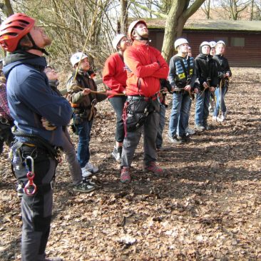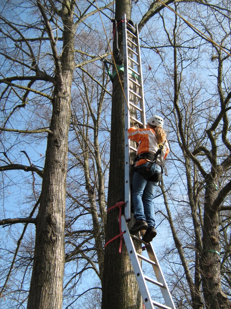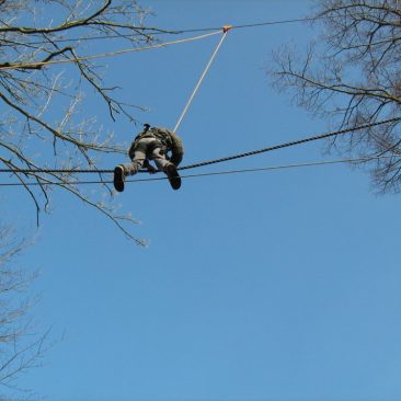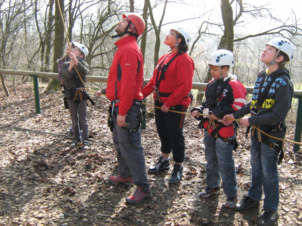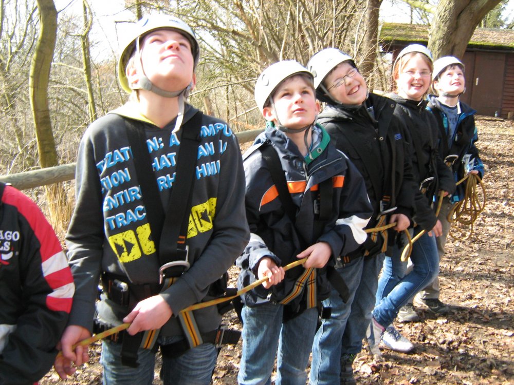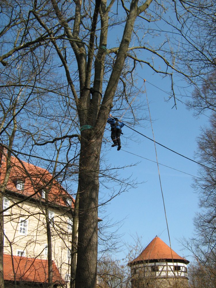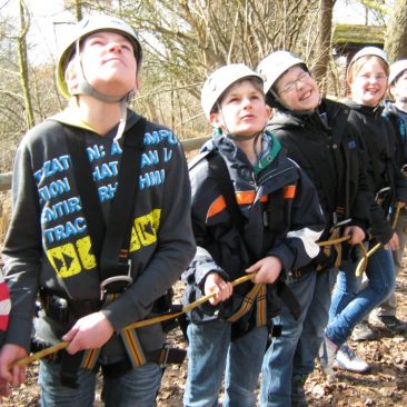 Bei einer anderen Station sind wir an einem Baum 2 Leitern hochgeklettert und die anderen haben uns gesichert. Dann sind wir auf einem Seil zu einem anderen Baum balanciert. Zum Schluss haben wir uns wieder von den Bäumen abgeseilt.