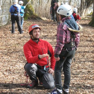 Adrian, Jörg und Benno, unsere Erlebnispädagogen, haben uns beim Frühstück besucht. Sie haben uns erklärt, wie wir uns fürs Klettern vorbereiten sollen.