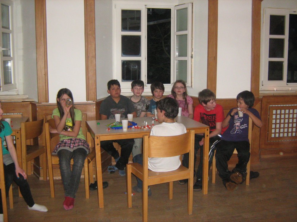 Anschließend sind wir zum Abendessen gegangen. Da hat es Brot, Wurst, Käse, Quark und Radieschen gegeben.