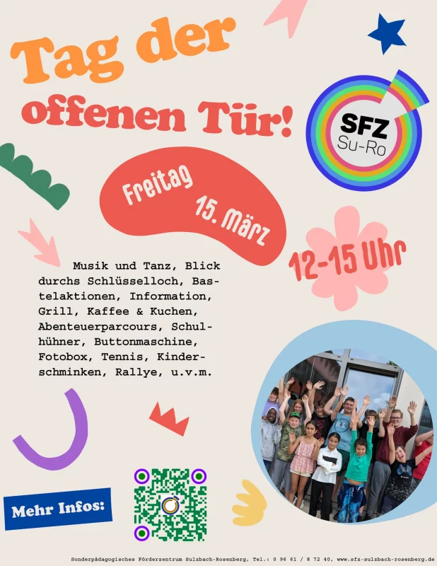 In Anwesenheit von Landrat Richard Reisinger und dem neugewählten Sulzbach-Rosenberger Bürgermeister Stefan Frank erfolgte der Startschuss in der Aula mit den Klassen 2 und 3/4G, die Einlagen in Form von Streetdance und rappenden Hühnern darboten. Anschließend gab es in den Räumen des sonderpädagogischen Förderzentrums vieles zu entdecken und ausprobieren: Lego-Roboter mit dem IPad gesteuert, eine Fotobox, zahlreiche Bastelaktionen, einen Abenteuerparcours in der Turnhalle, Tennis, eine Schulhausrallye, etc. erfreuten die Gemüter. Zusätzlich wurden die Besucher darüber informiert, wie Kinder mit sonderpädagogischem Förderbedarf am Förderzentrum optimal unterstützt und auf den Eintritt in das Berufsleben bzw. eine Rückführung in Grund oder Mittelschule vorbereitet werden. Außerdem hatte die der Schule angegliederte Schulvorbereitenden Einrichtung als spezieller Kindergarten nebenan ebenso ihre Pforten geöffnet. Auch die Kleinsten beteiligten sich mit Liedern und Gedichten am bunten Tagesprogramm.