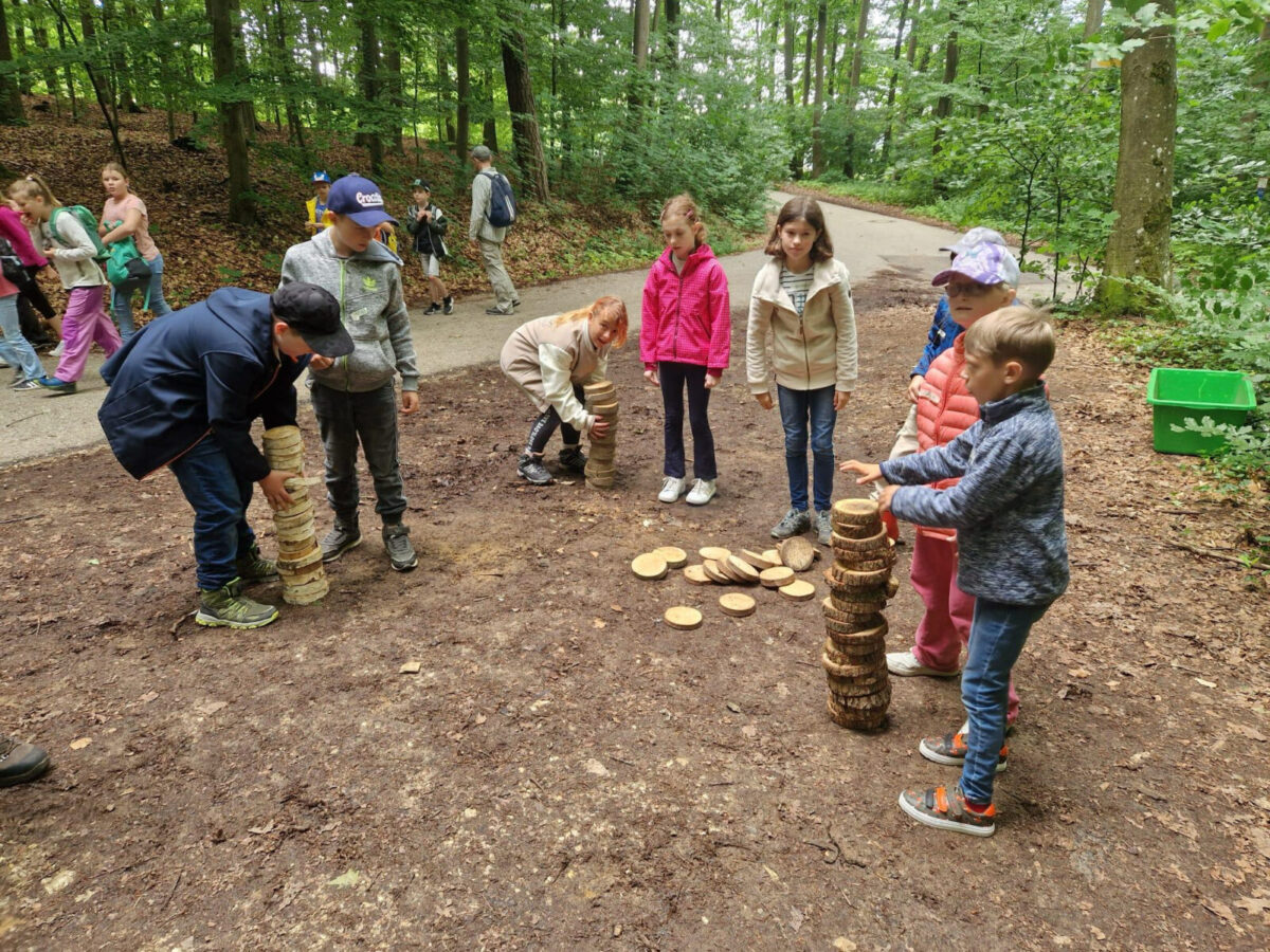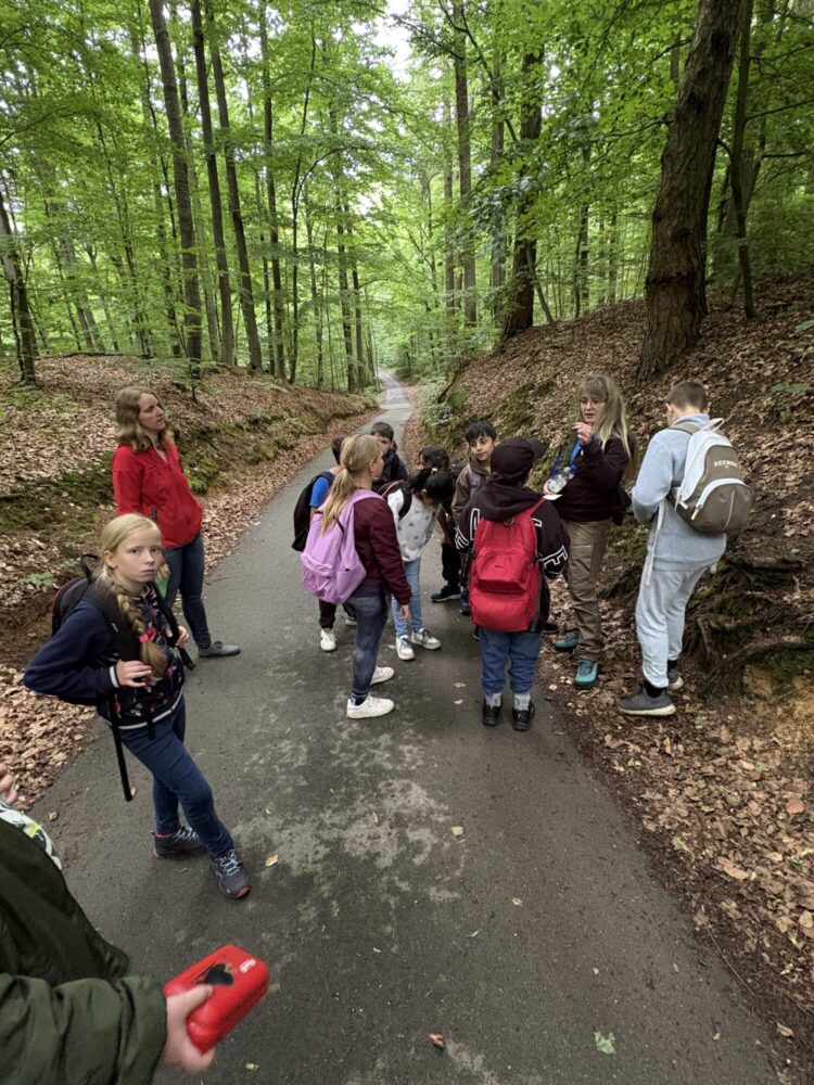 Die Klassen 3 und 3G durften dieses Jahr an den Waldjugendspielen in Amberg am Mariahilfberg teilnehmen. Die Drittklässler wanderten unter Führung ihres eigenen Forstpatens rund drei Stunden durch den Wald. Dabei erfuhren die Kinder einige interessante Fakten über die Baumarten und Tiere des Waldes. Neben dem wertvollen Vortrag des Forstpaten durften die Kinder an verschiedenen Spielen teilnehmen und Punkte für ihre Klasse sammeln. Zu den spannenden Spielen gehörten unter anderem der Fichtenzapfenweitwurf oder das Stapeln von Holzscheiteln. Nachdem sie die abwechslungsreichen Aufgaben mit großem Geschick und Ehrgeiz gemeistert haben, erhielten sie als Belohnung eine Medaille für die Teilnahme.