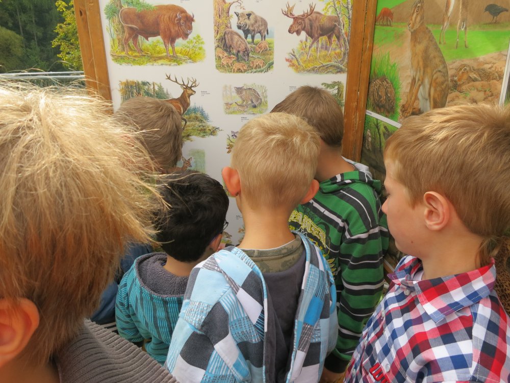 In der freien Natur kann man diese Dinge kaum erforschen. Gut dass es dafür Experten gibt! Am Wildlandmobil des Bayrischen Jagdverbandes erklärten die Jäger Robert Wagner, Klaus Paul und Gisela Lehnerer den Kindern beispielsweise den Unterschied und die Lebensweise von Hirsch und Reh. Es gab viel zu entdecken. Vögel, Reh, Fuchs, Marder, Dachs und andere Wildtiere konnten als Präparate genau betrachtet und auch begriffen werden. Bei einem Pirschgang wurden die Schüler zu Entdeckern in Sachen Wild. Fuchsfell fühlt sich viel weicher an als die Haut eines Wildschweins. Wildschweine haben ein Allesfresser-Gebiss und ein Hirschgeweih wiegt bis zu zehn Kilogramm!
