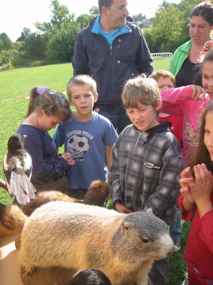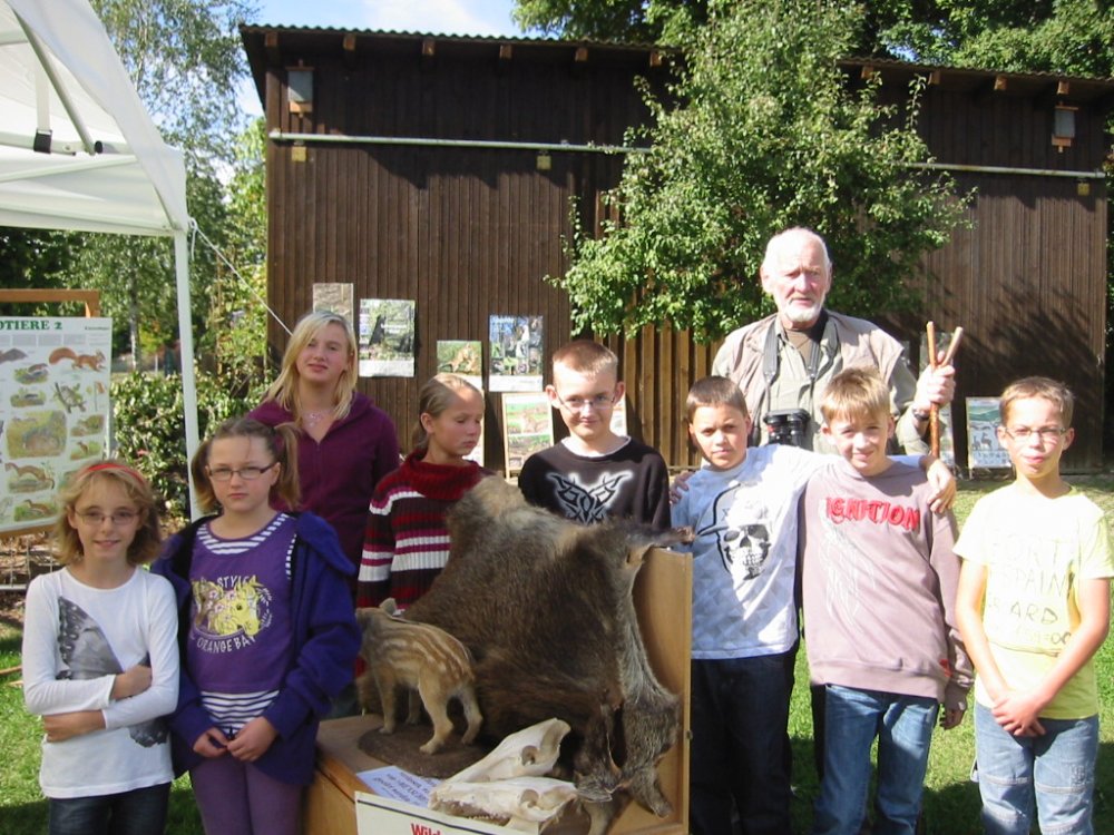 An zwei Tagen besuchten über 90 Kinder mit Ihren Lehrern die Jäger auf dem Pausenhof der Schule. Alle waren mit viel Interesse bei der Sache. Die Schüler und Lehrer erfuhren viel über das richtige Verhalten bei Begegnungen mit Wildtieren. Besonders Jungtiere sollte man niemals anfassen und lieber in Ruhe lassen!. Zum Schluss gab es für alle Besucher noch ein kleines Andenken an das Wildlandmobil. Schade, dass Biologiestunden im Freien bei schönstem Herbstwetter so selten sind….
