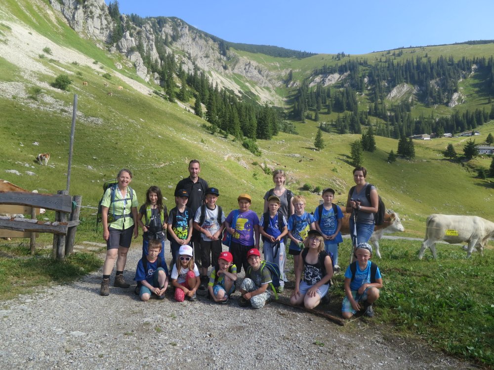Nach vielen, vielen Vorbereitungen und mit der notwendigen Wanderausrüstung im Gepäck war es am Montagvormittag endlich soweit. Um 10.33 Uhr fuhr der Zug am Sulzbacher Bahnhof ab in Richtung Berge. Nach langer Zug- und Busfahrt kamen die 13 Kinder und vier Erwachsenen am Nachmittag am Spitzingsattel an. Dort wurde das Gepäck vom Hüttenbetreiber abgeholt und zur Hütte gebracht. Die Wandergruppe musste den Aufstieg zur Schönfeldhütte, die auf 1410 Metern Höhe liegt, durch einen Wald und ein Almengebiet aber selbst bestreiten. Mit einigen Pausen wurde das von allen locker geschafft und nach der herzlichen Begrüßung dort wurden die Zimmer zugeteilt und die Räumlichkeiten kennengelernt. Nach dem Abendessen verschwanden alle ganz schnell in ihren Betten, denn am nächsten Tag stand die längste Tour an.